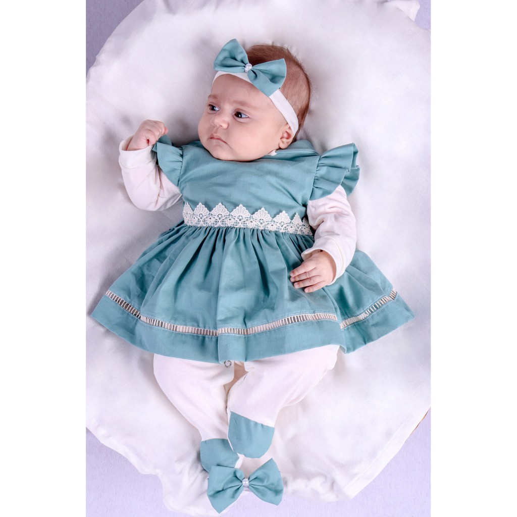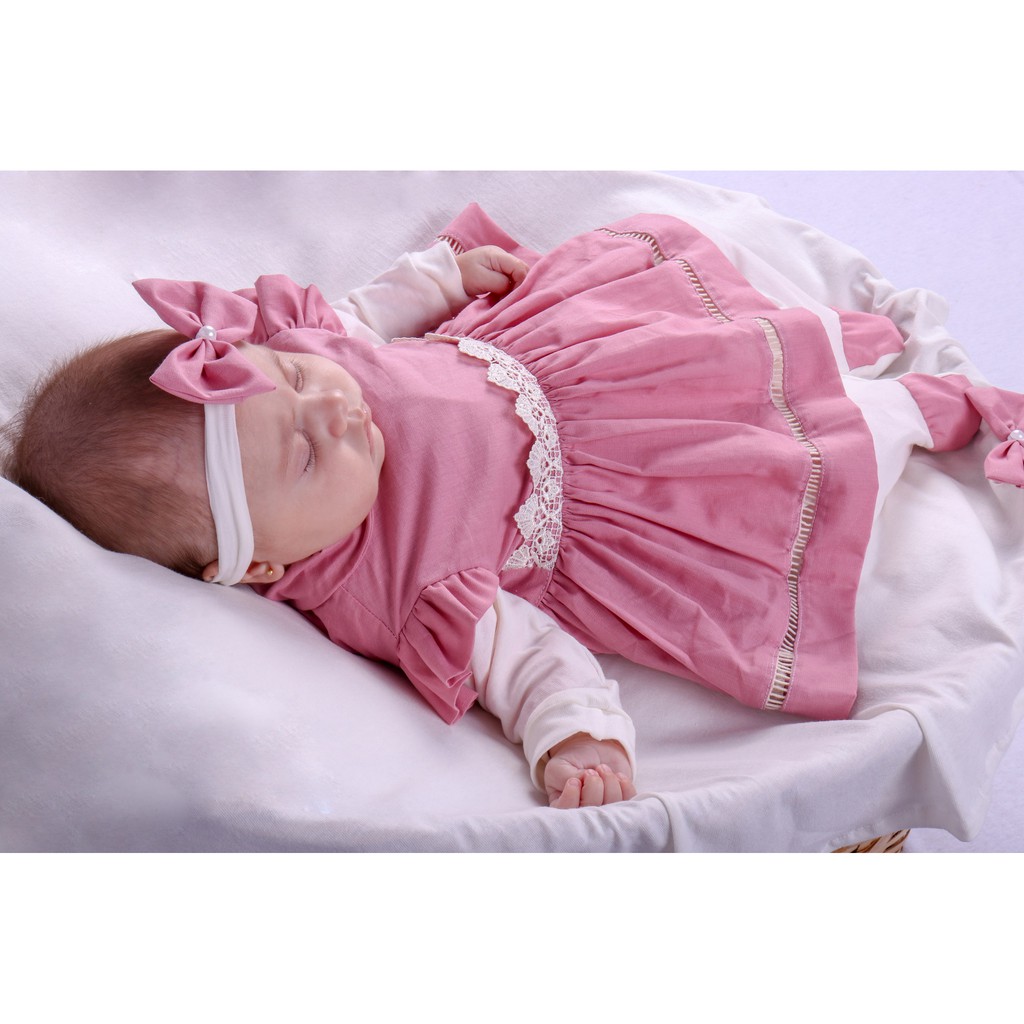 Saída Maternidade Menina Alice Renda 04 peças Rose Roupa de Bebê Menina