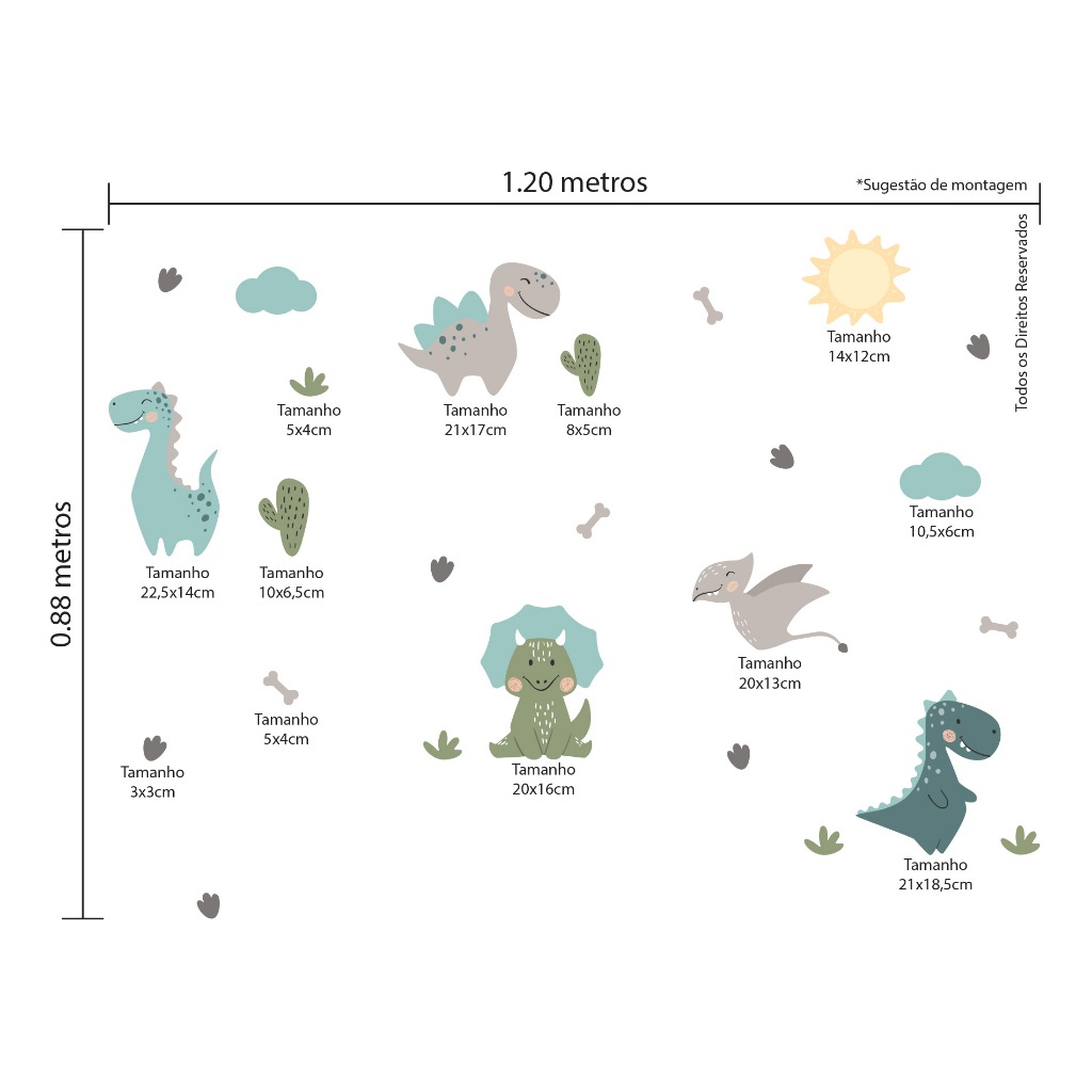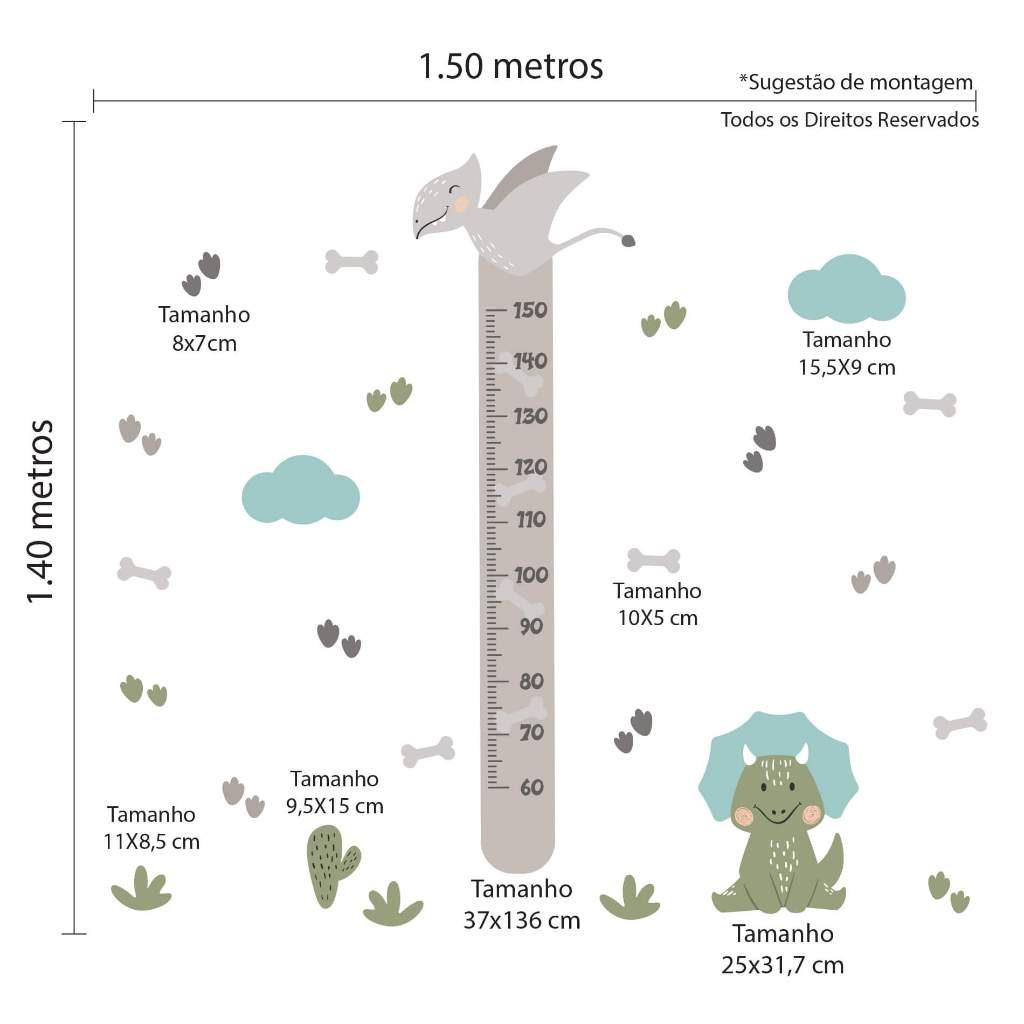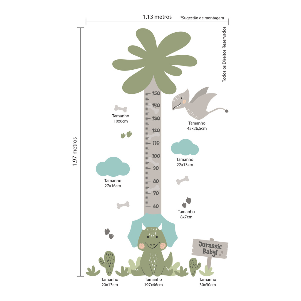 Adesivo de Parede Dinossauro Baby Régua Crescimento Quarto Menino