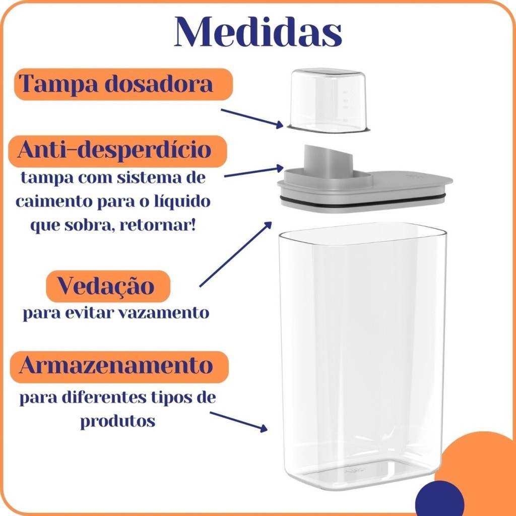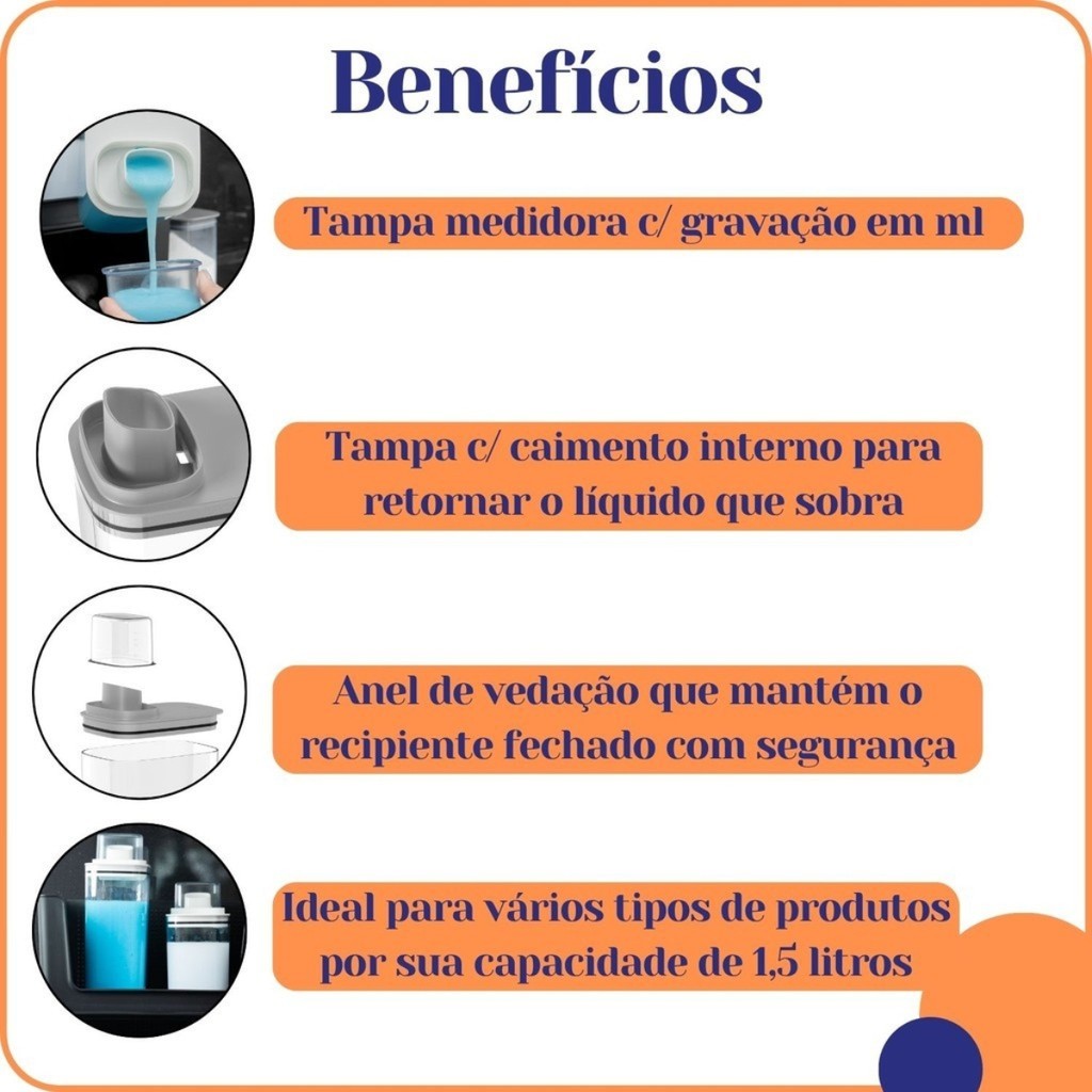 Dispenser Organizador Lavanderia 2,3 litros E1,5 Litros Acrílico Amaciante Sabão em Pó Liquido Tira Manchas