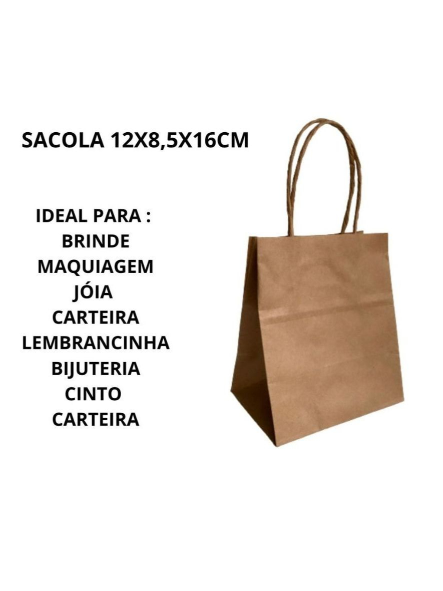 Sacolinha Papel Kraft Pequena PP 12x8,5x16cm Brinde Semi Joia Bijuterias Presente Lembrancinha