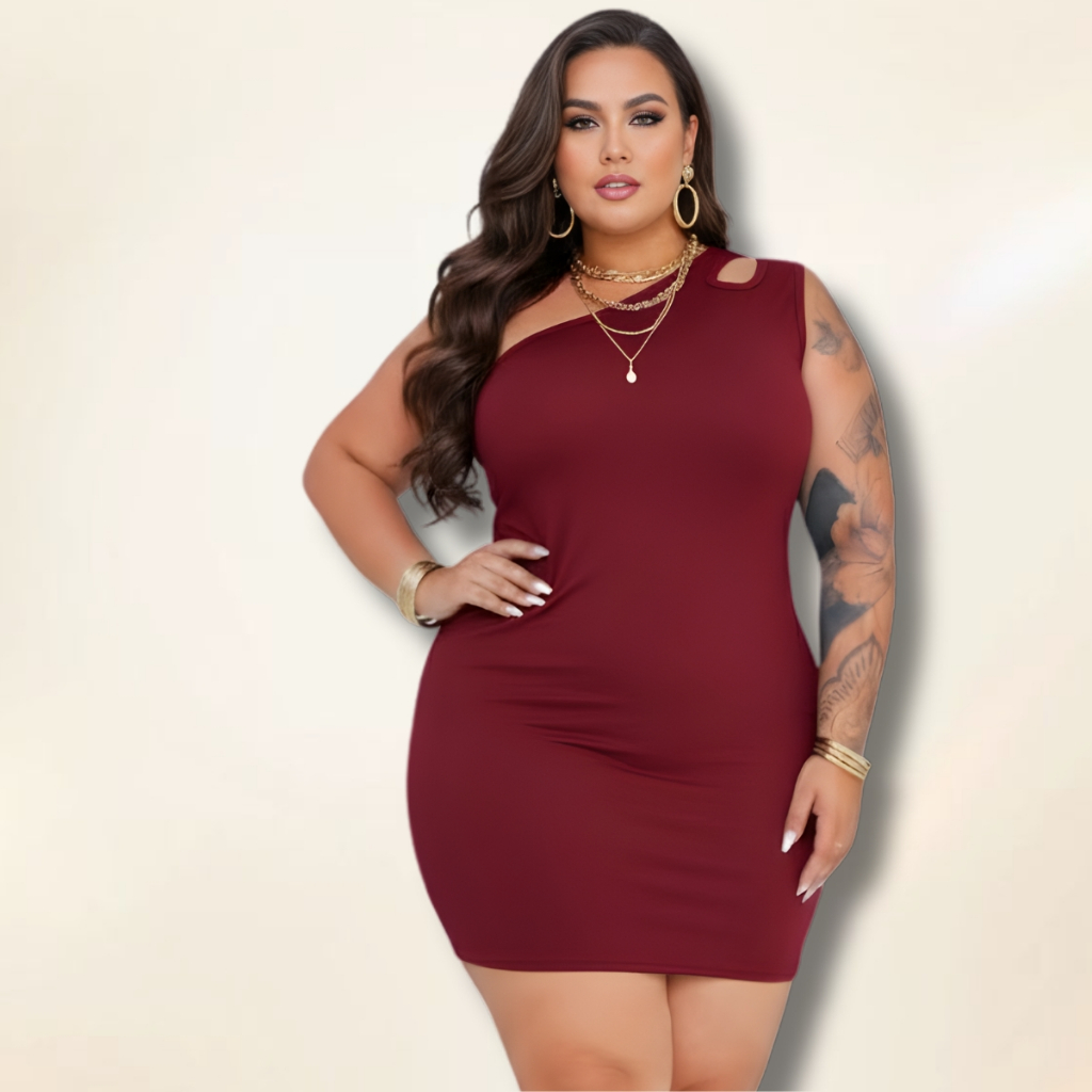 Vestido Plus Size Curto Um Ombro Só Premium Confortável Modelador