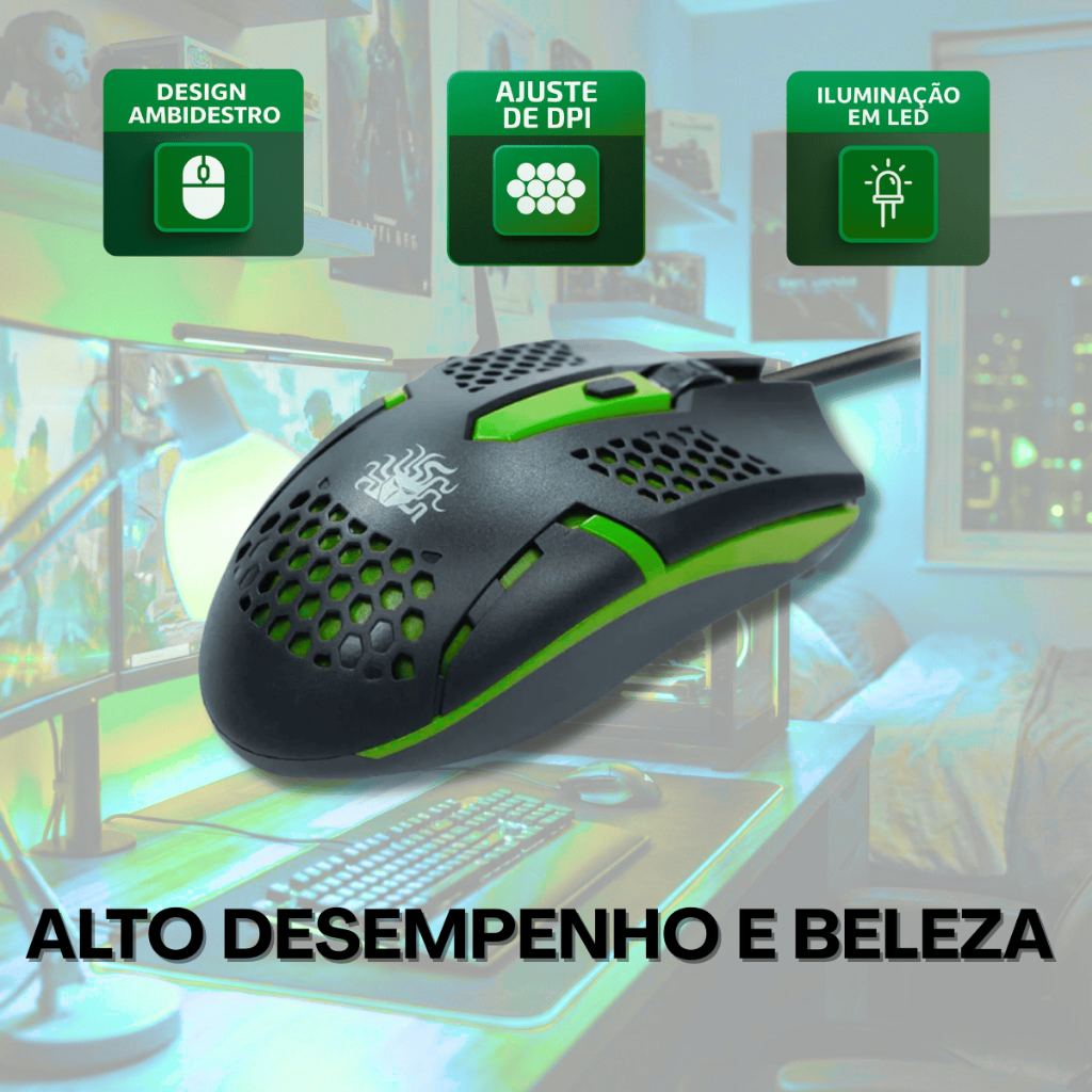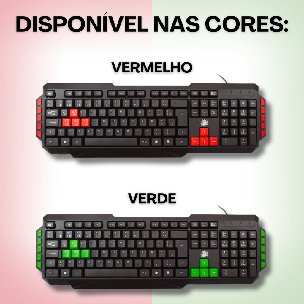 Teclado Mouse Gamer ABNT2 Teclas Destacadas Multimídia Lateral USB