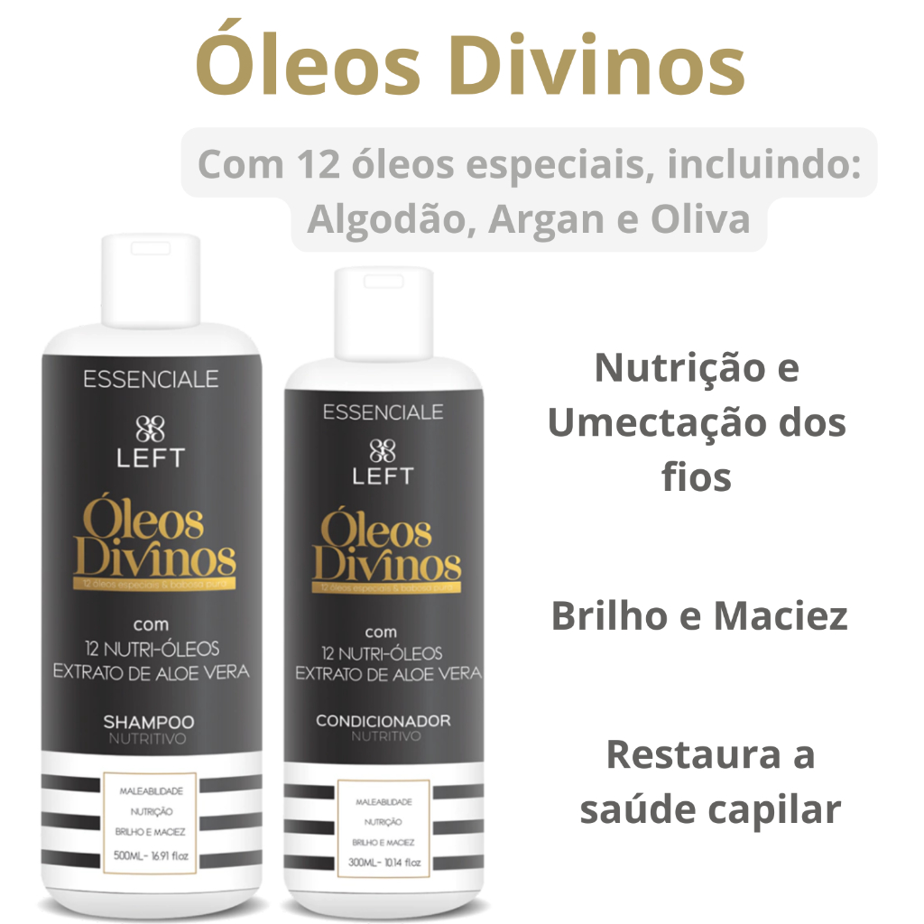 Kit Nutrição Capilar Óleos Divinos Shampoo 500ml + Condicionador 300ml Mini Pack Essenciale Left
