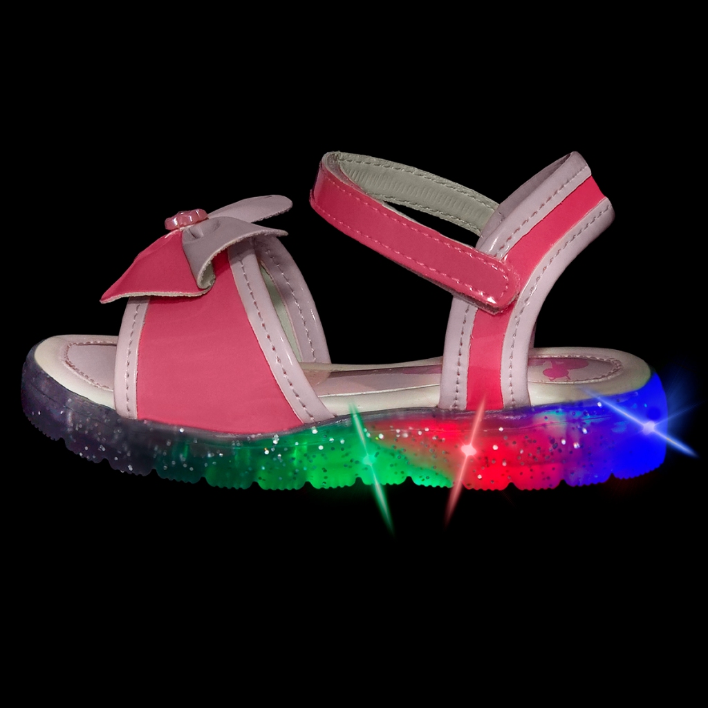 Kit Sandália Infantil Luzinha Menina Sola Led Com Bolsinha Rosa BB&Kids