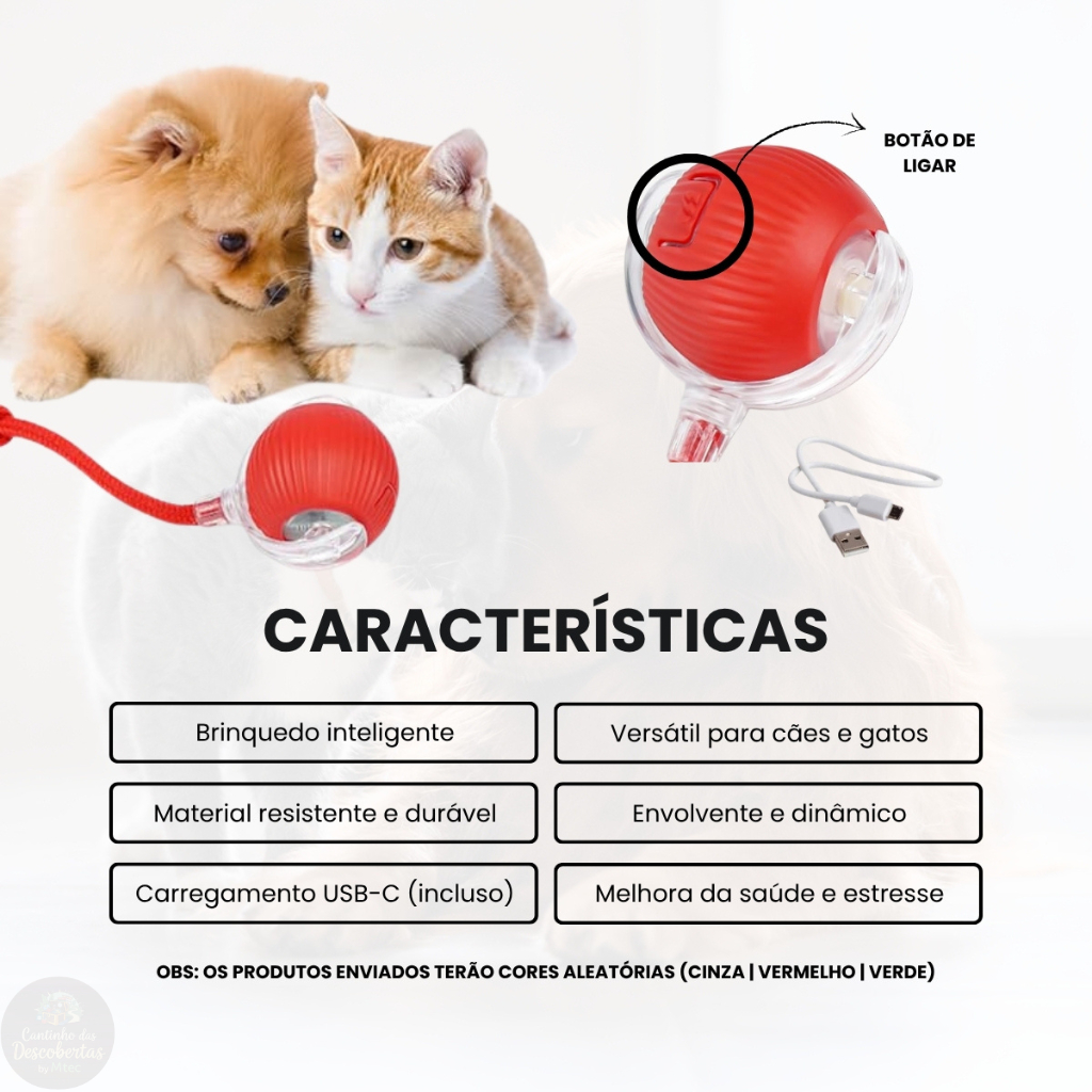 Bola Brinquedos De Rolamento Automático Bolinha Interativa Gato Cachorro Pet Recarregavel