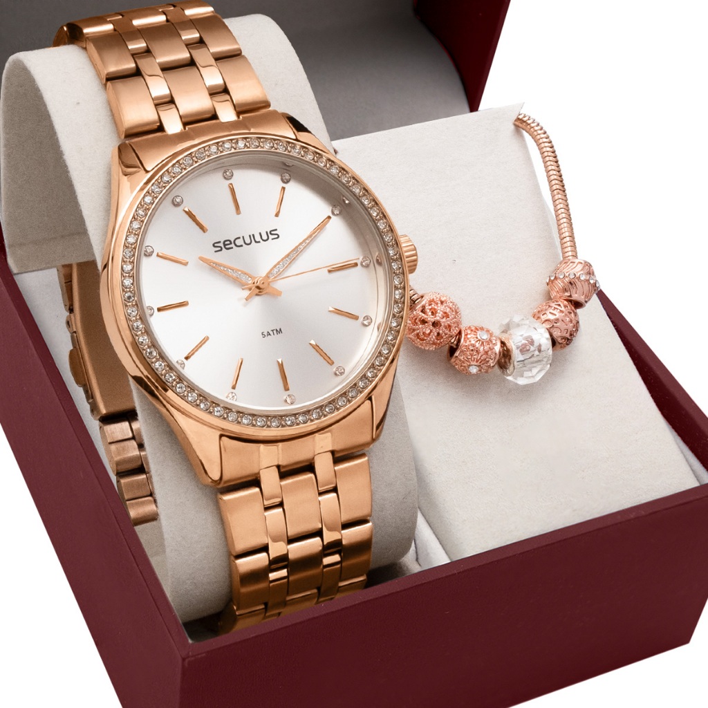 Kit Relógio Seculus Feminino com Pulseira 77135LPSKRS2K1