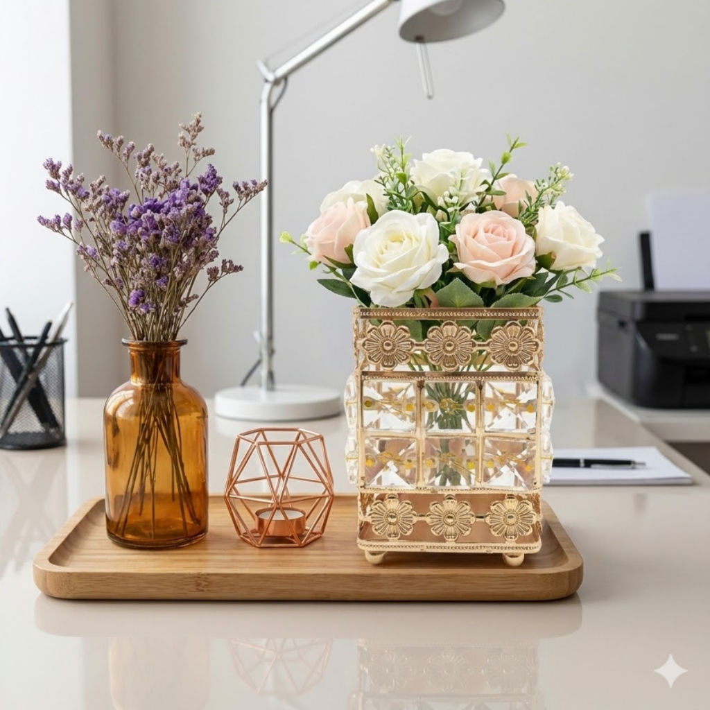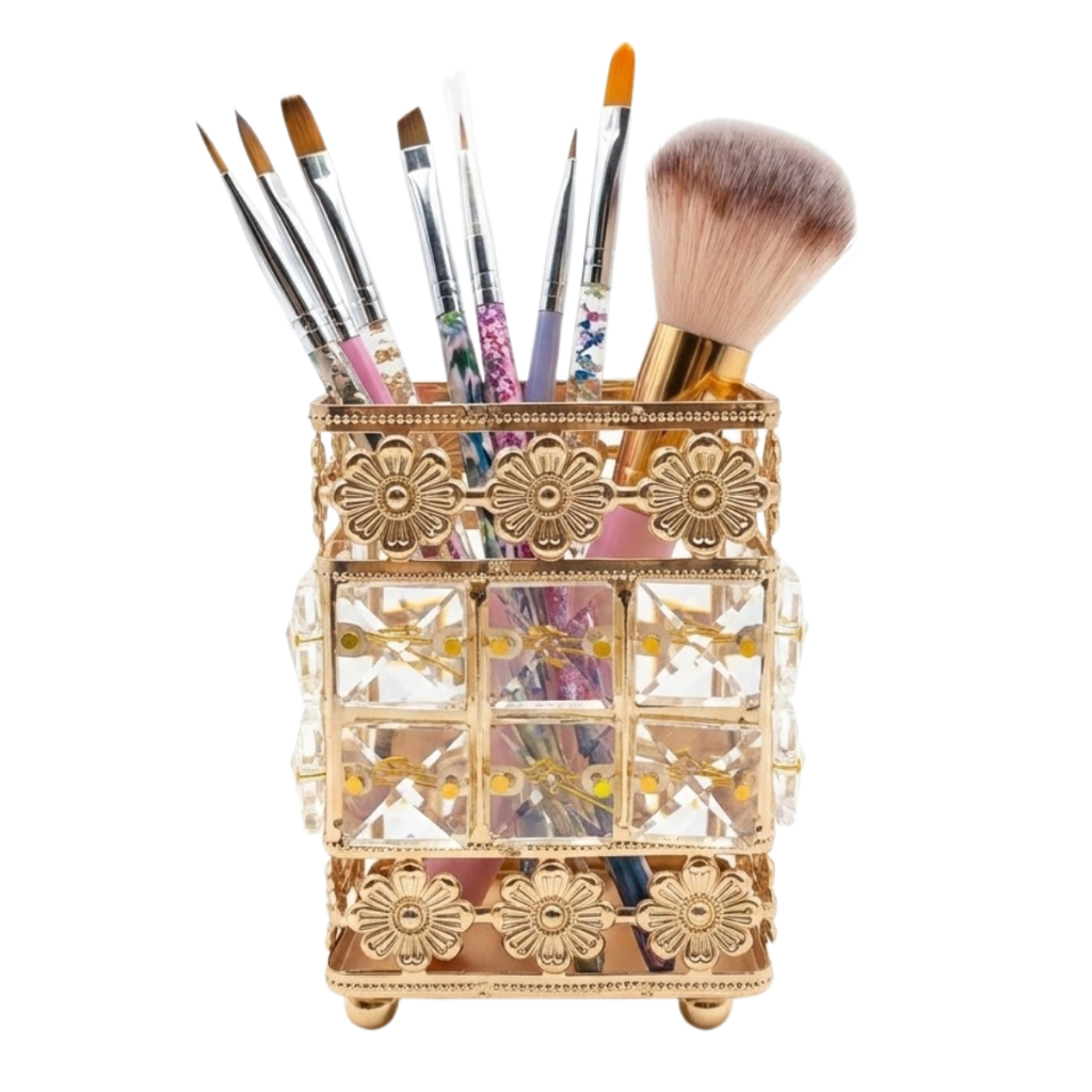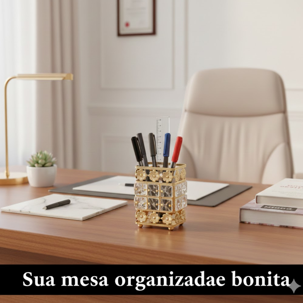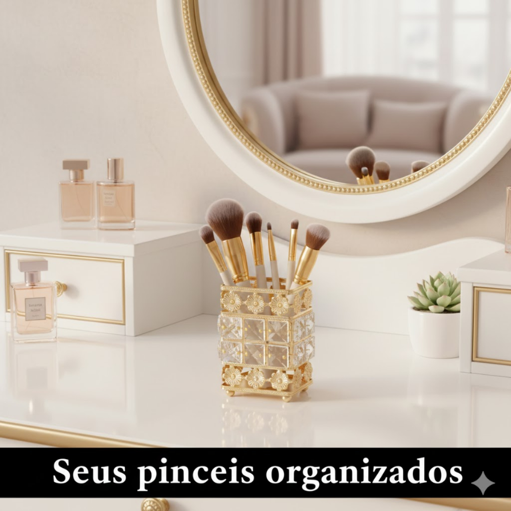 kit 2 Porta Pincel Cristal Luxo Dourado Make Organizador camarim de maquiagem Caneta Mesa para nail designer manicure
