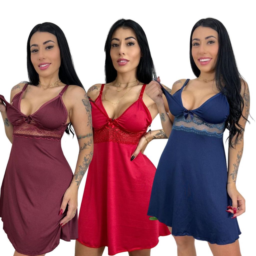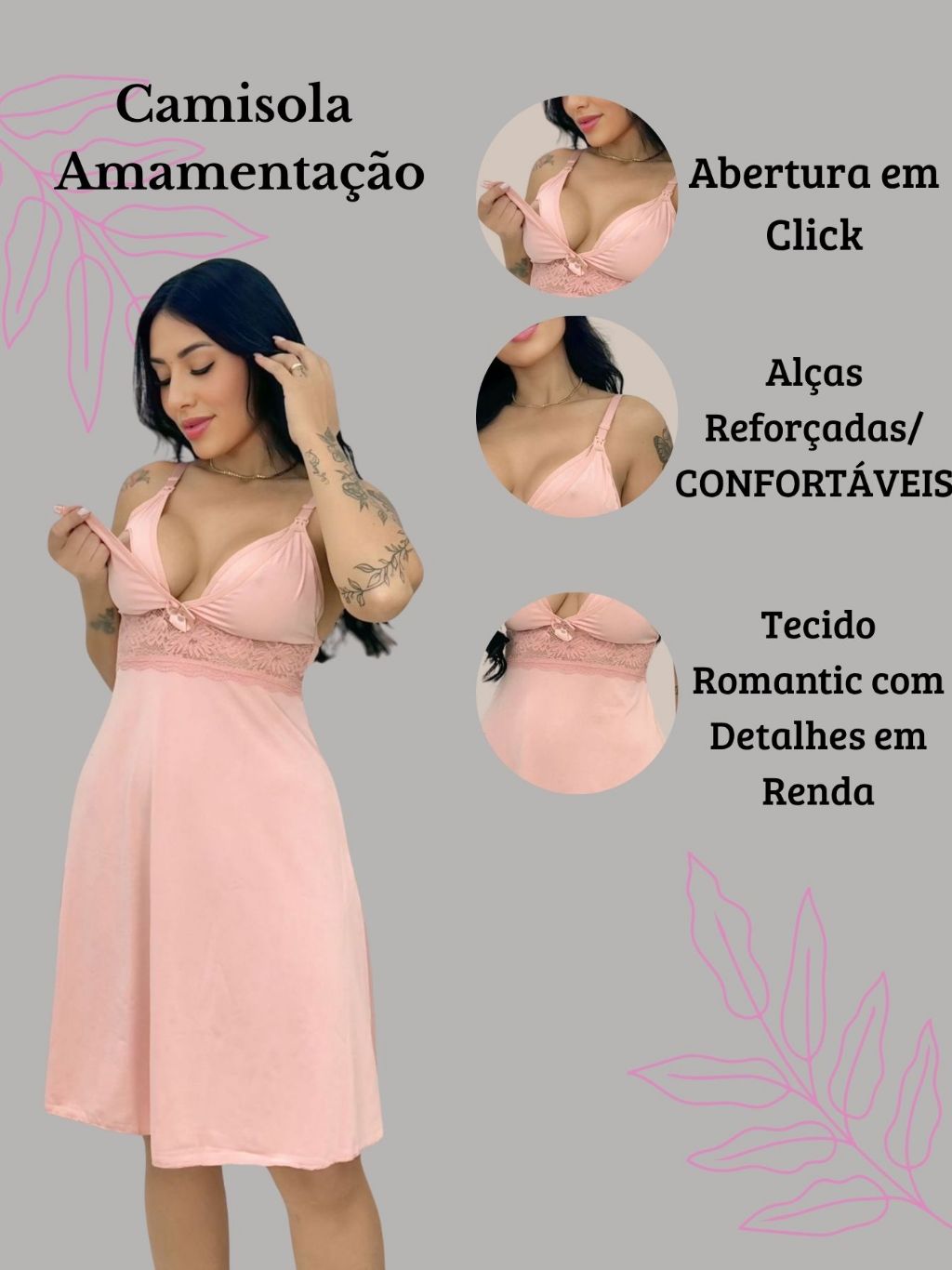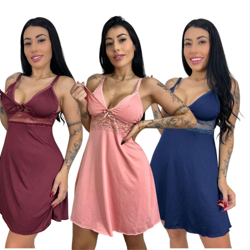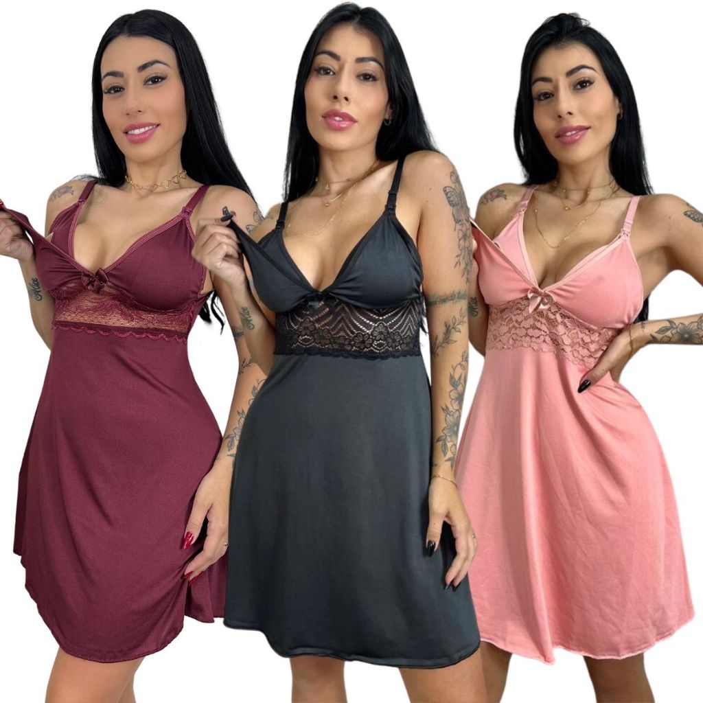 KIT 03 Camisolas Amamentação com Detalhe em Renda Saída Maternidade Grávida Gestante Lactante.