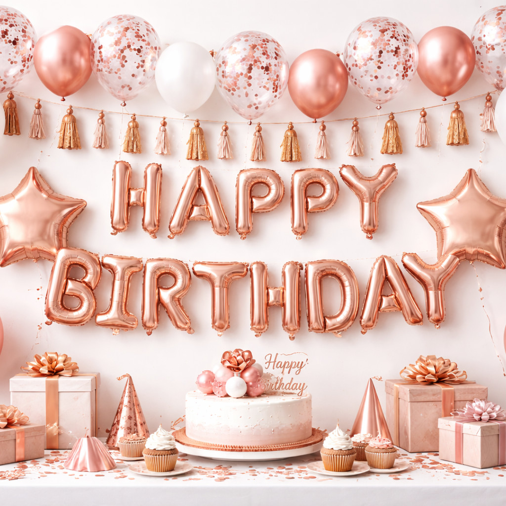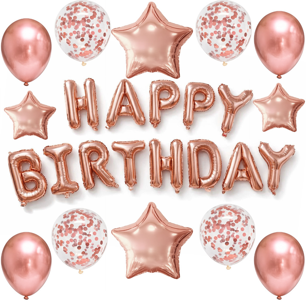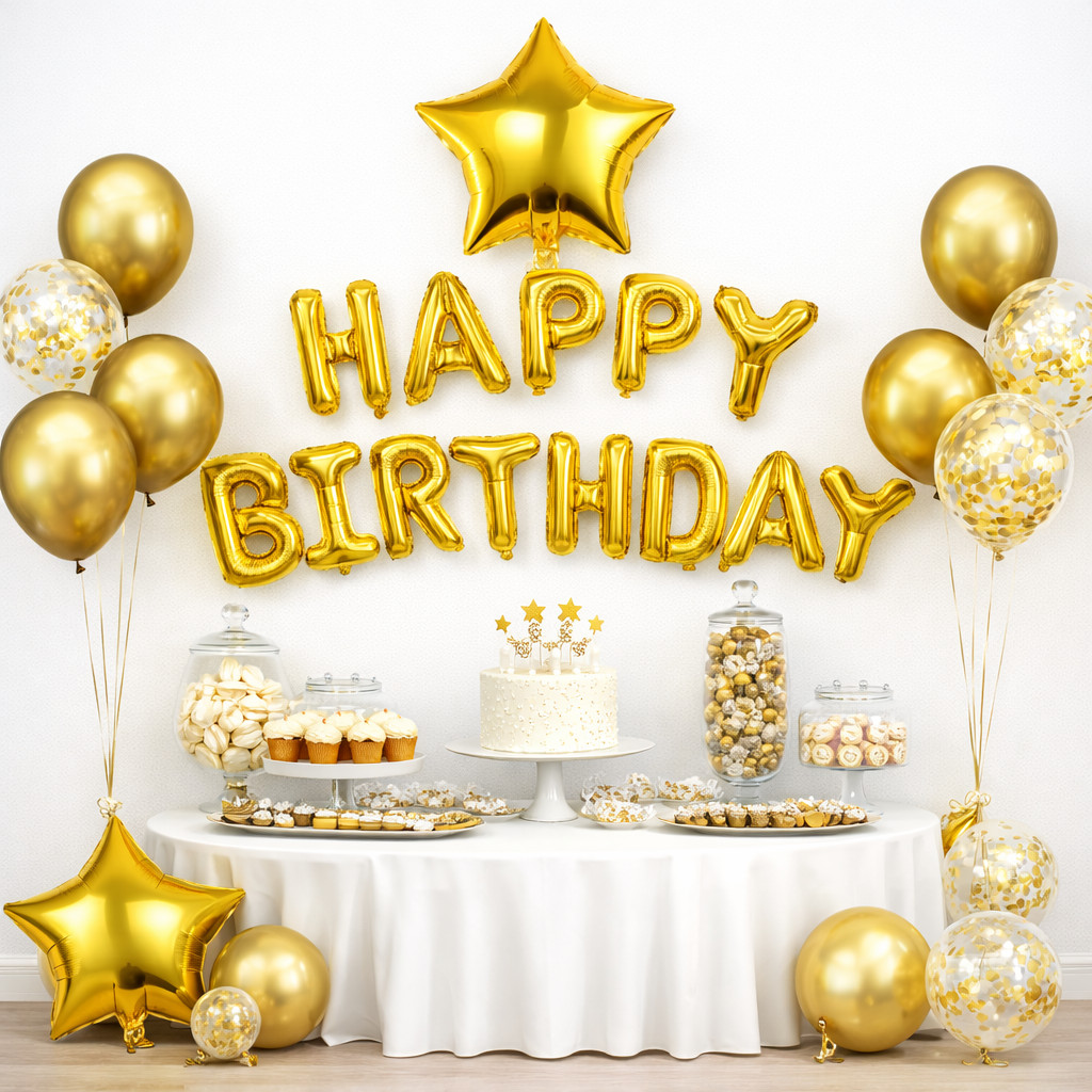 Kit de Balões Happy Birthday + Bexigas de Confete e Cromado Para Decoração de Festa de Aniversario