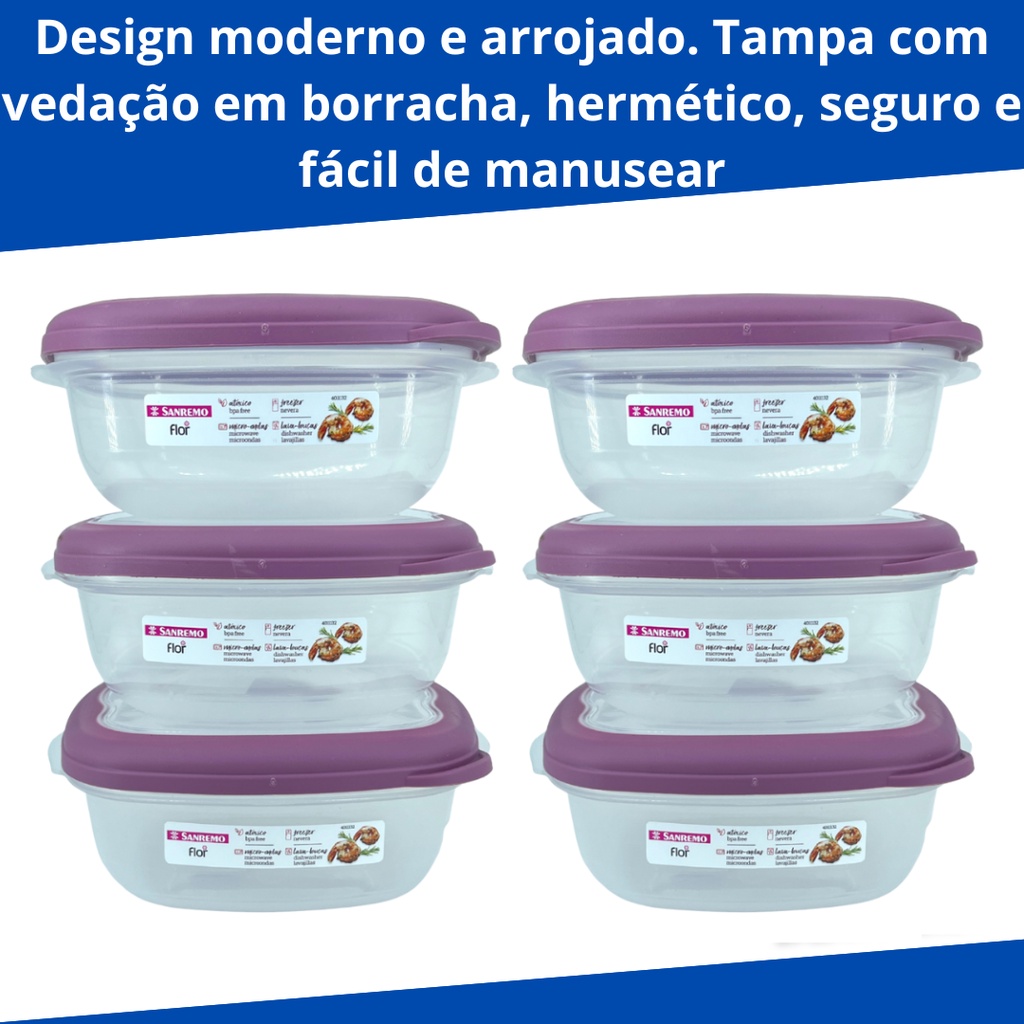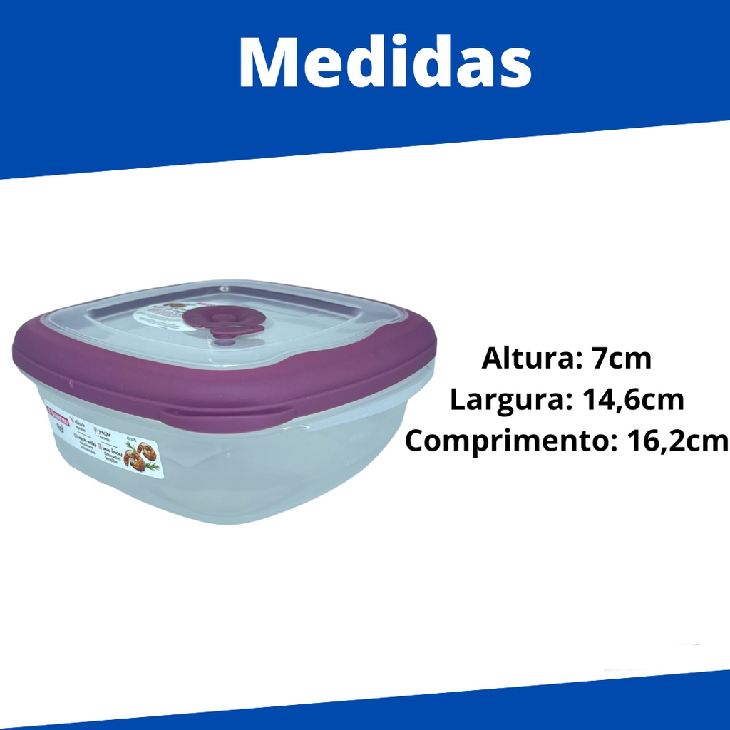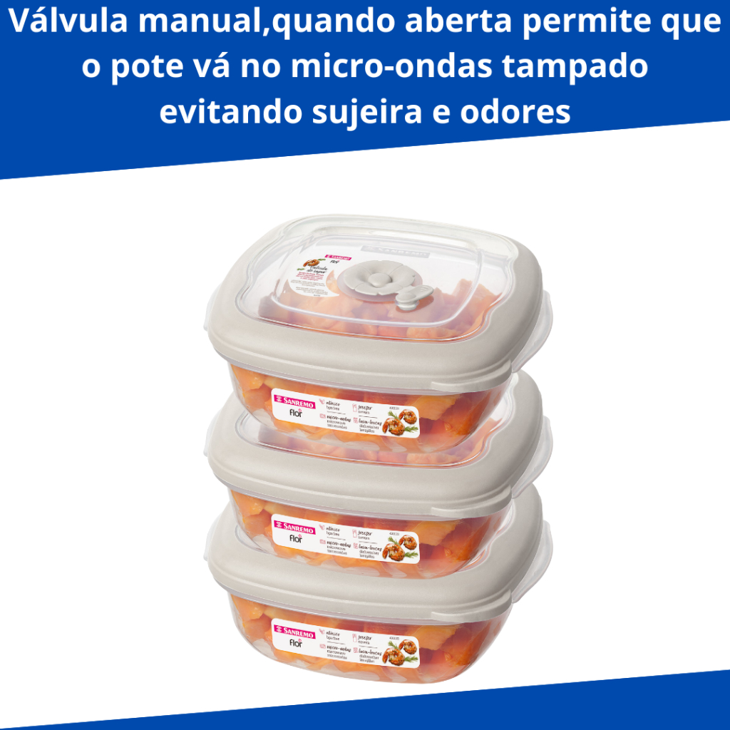Kit 3 Potes Plástico Empilhaveis com Válvula Micro Ondas 920ml Quadrado