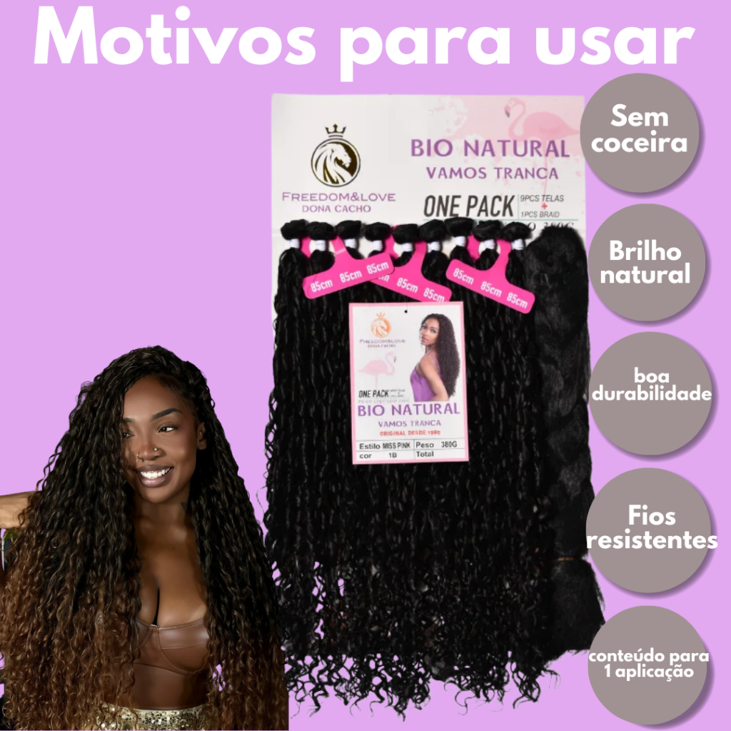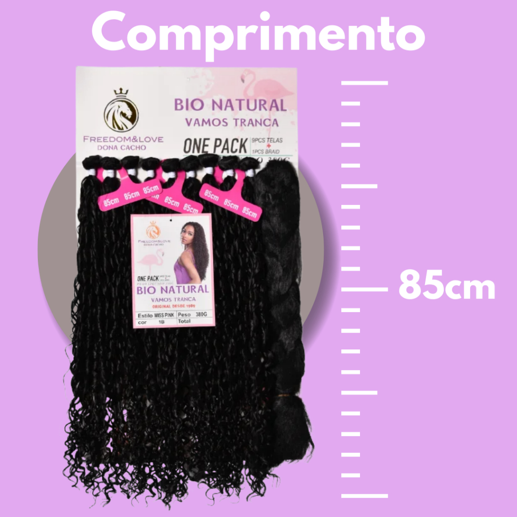 Cabelo Miss Pink Cacheado Freedom&Love Bio Fibra 85cm 380g + Jumbo Braid Original
