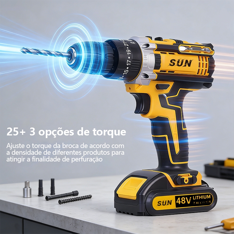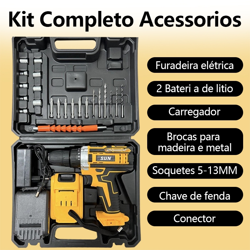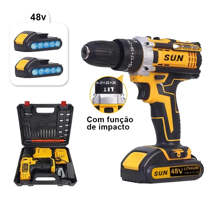 Parafusadeira Furadeira de Elétrica Sem Fio Impacto 48V Bateria 3 funções Kit Completo Acessórios