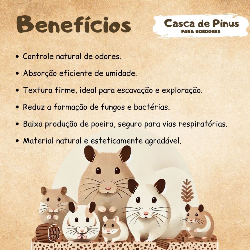 Casca de Pinus Lavada Para Terrario de Roedores CPC Pet Care