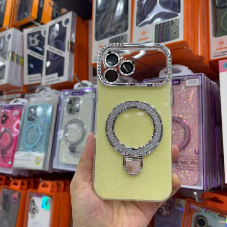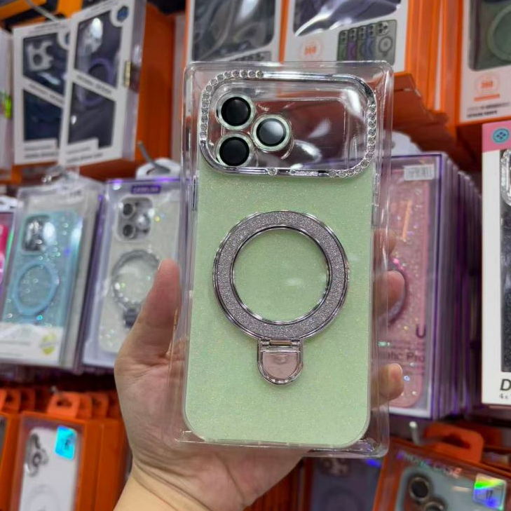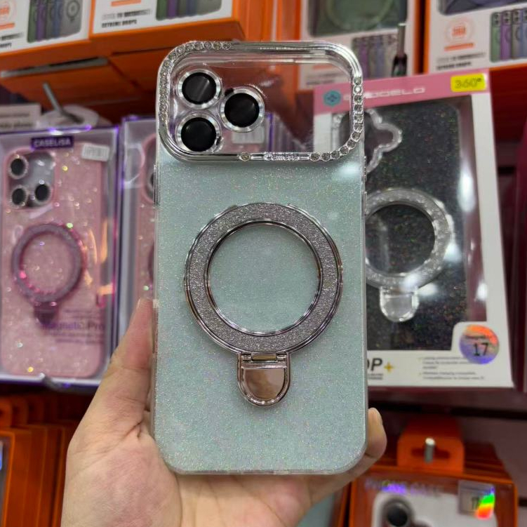 Capa com lente de Luxo Brilhante Suporte Anel Giratório pra Iphone 17/17pro/17promax/16/15/14/13/12/11/pro/promax