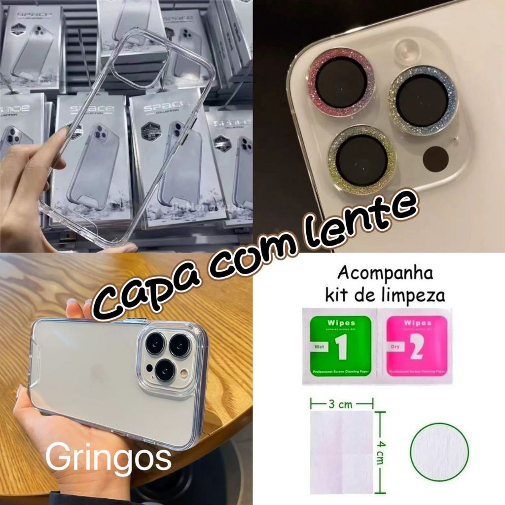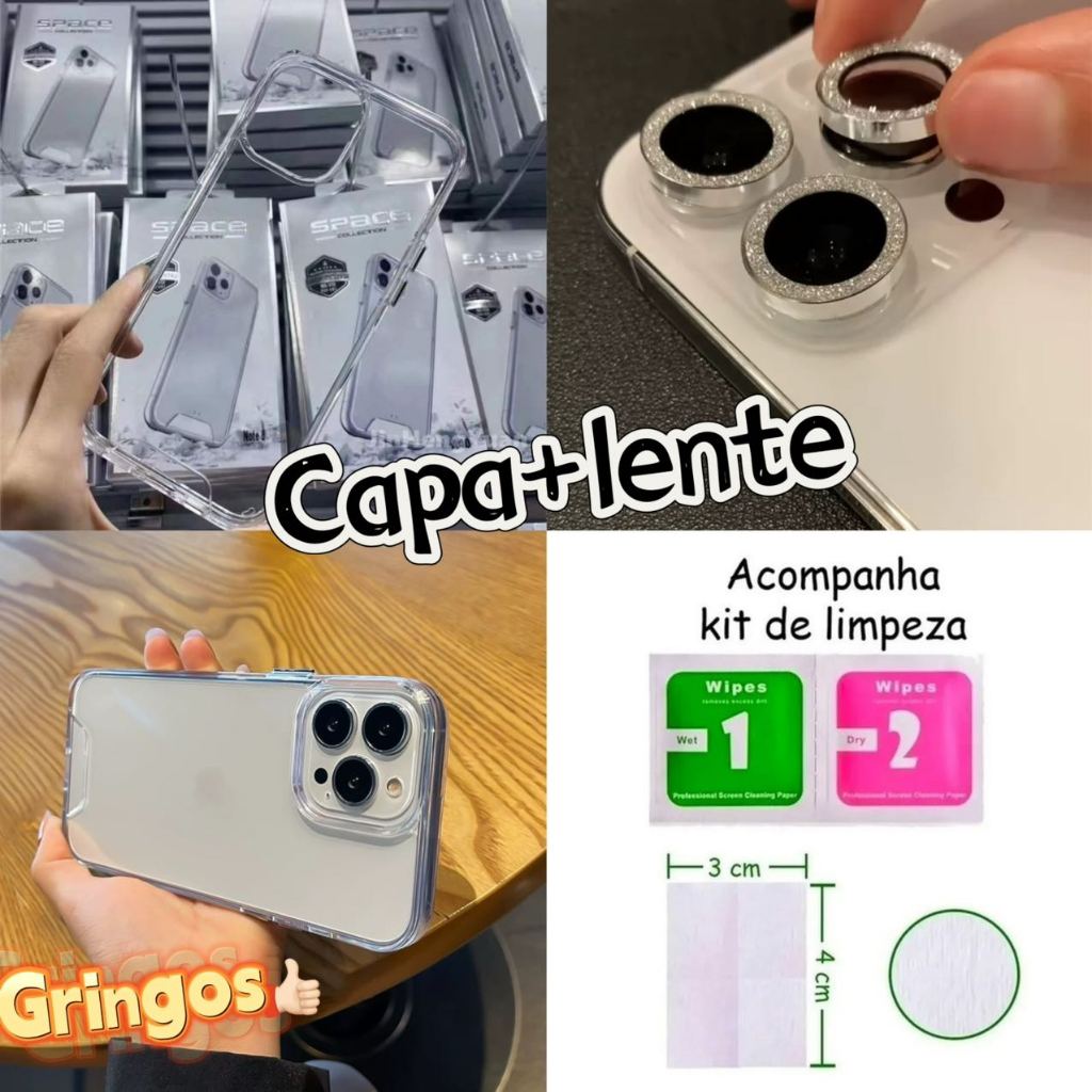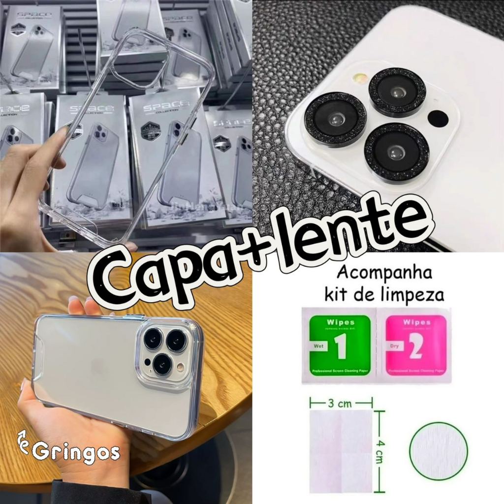 Capa Capinha Space Transparente Anti Impacto + kit Lente Película De Câmera brilho pra iphone 11/12/13/14/15/16