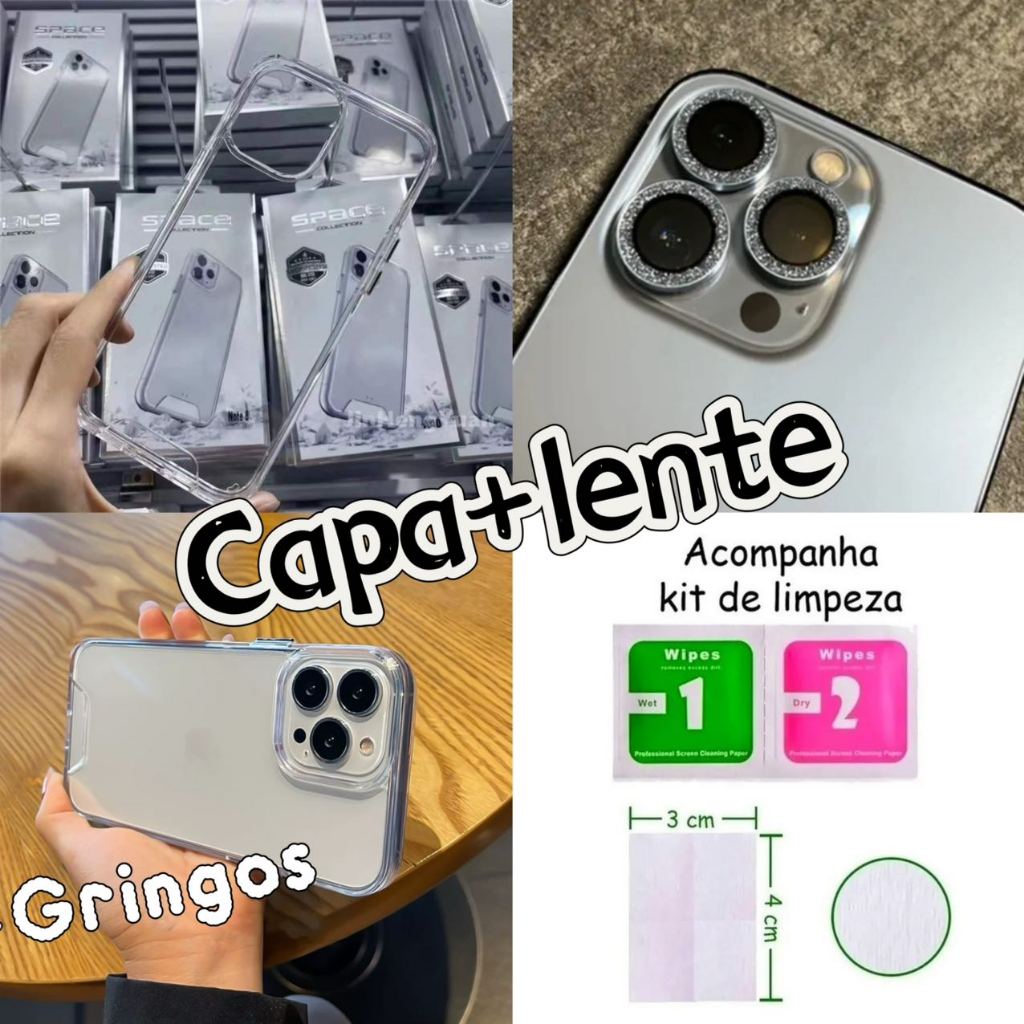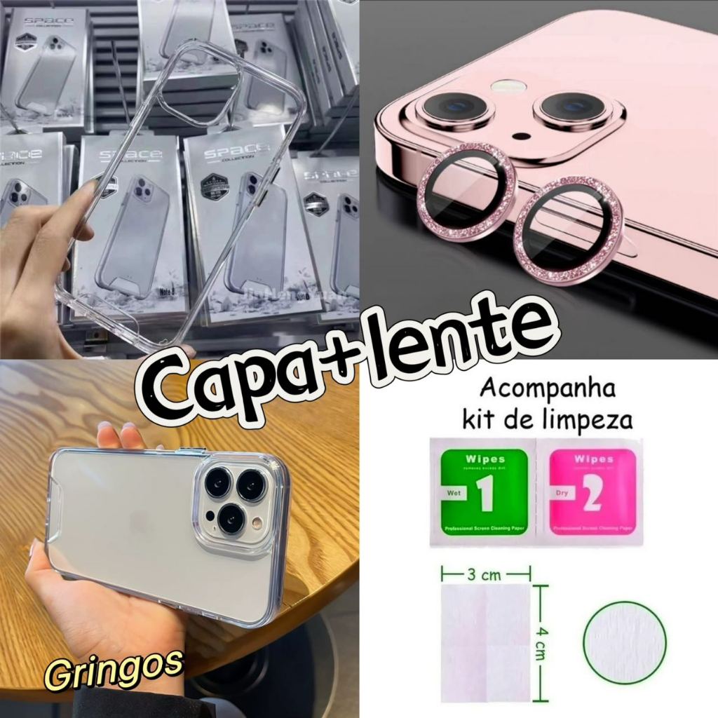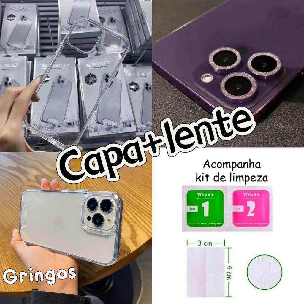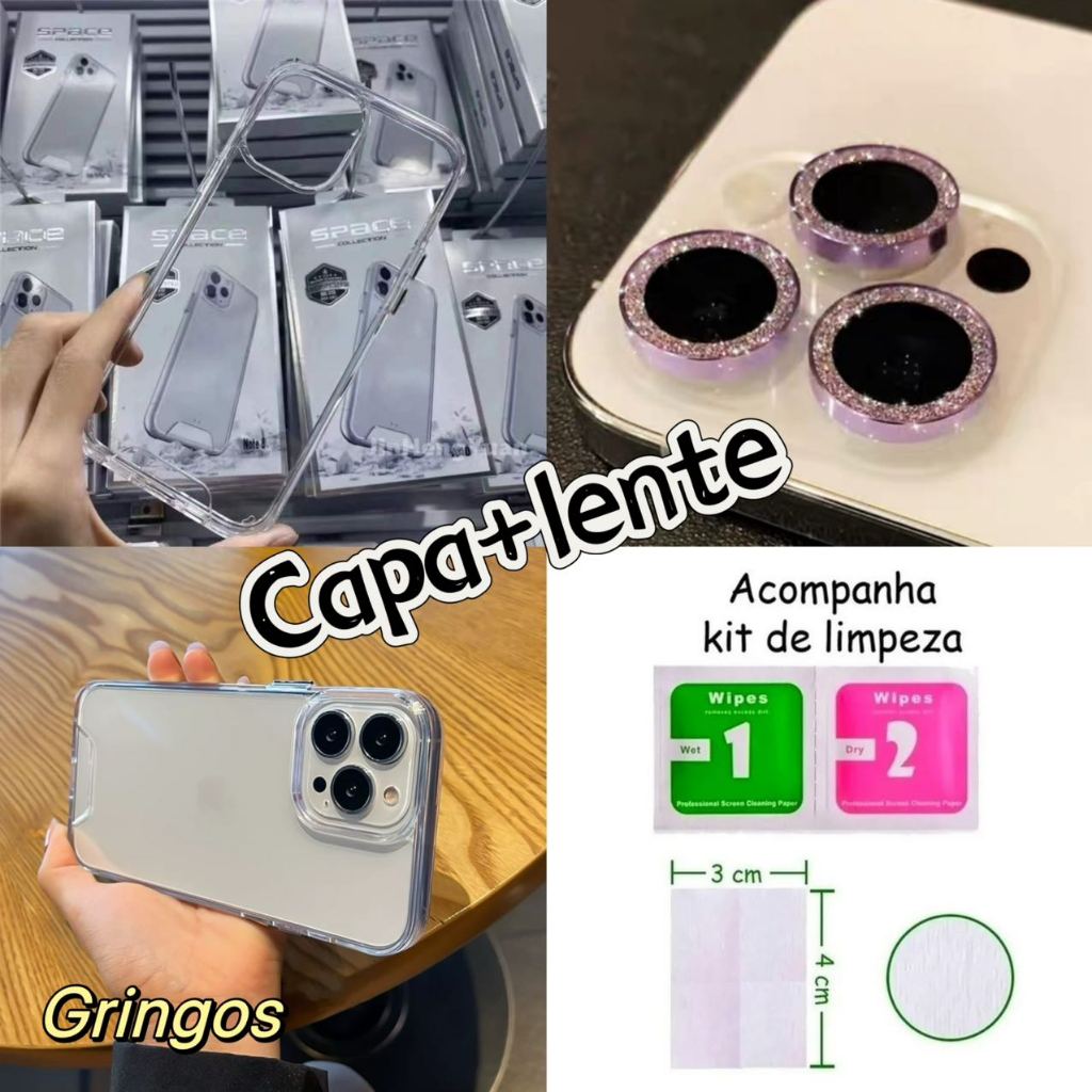 Capa Capinha Space Transparente Anti Impacto + kit Lente Película De Câmera brilho pra iphone 11/12/13/14/15/16