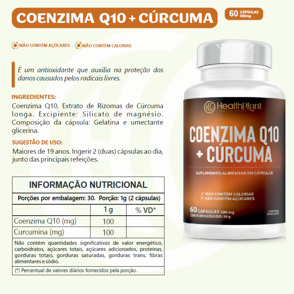 Coenzima Q10 Ubiquinona Concentrada + Curcuma 60 Cápsulas Saúde Do Coração Imunidade