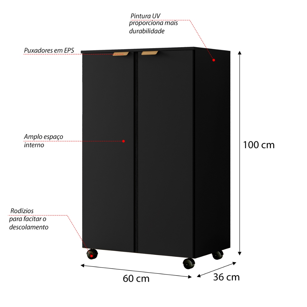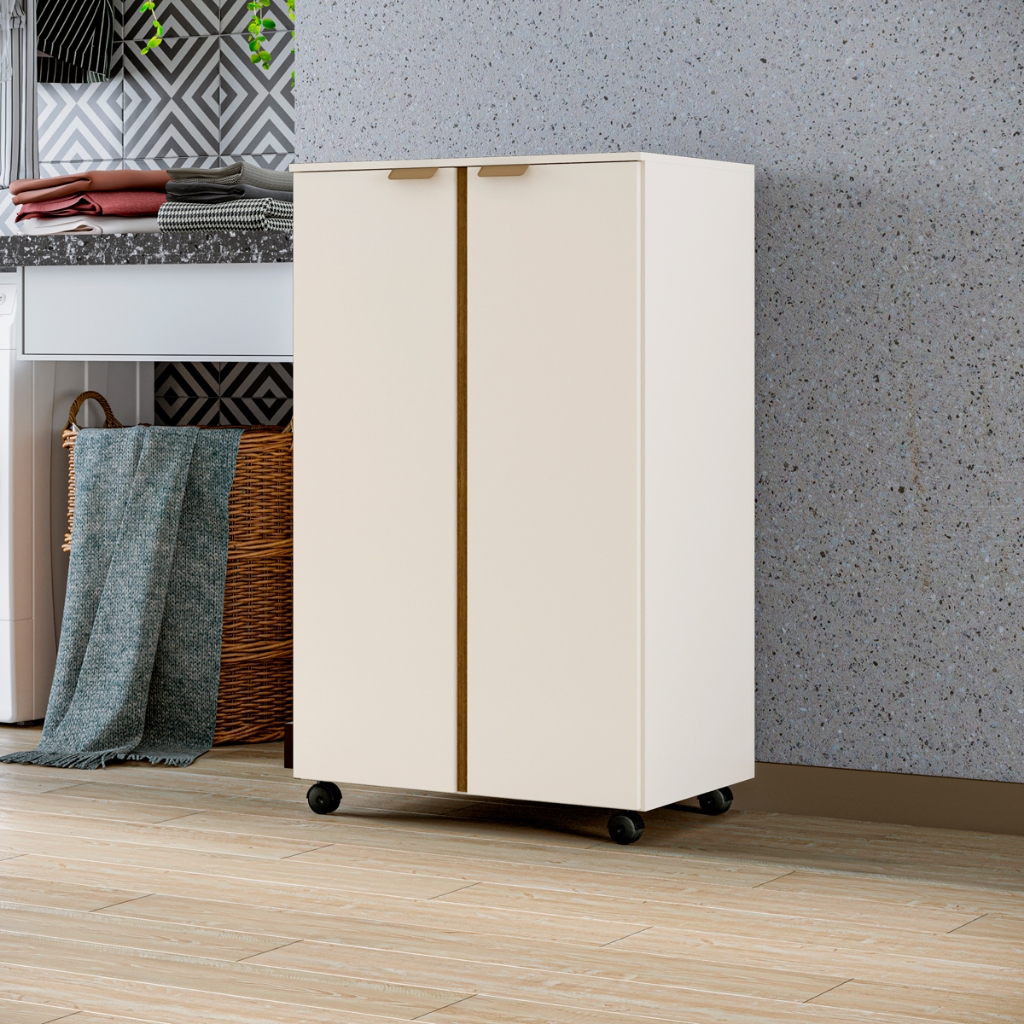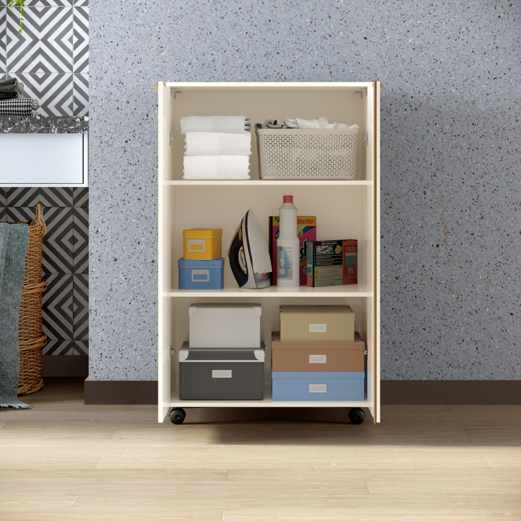 Armário Organizador Multiuso com rodizio e prateleiras flex. inteiro na cor ou detalhe em outra cor