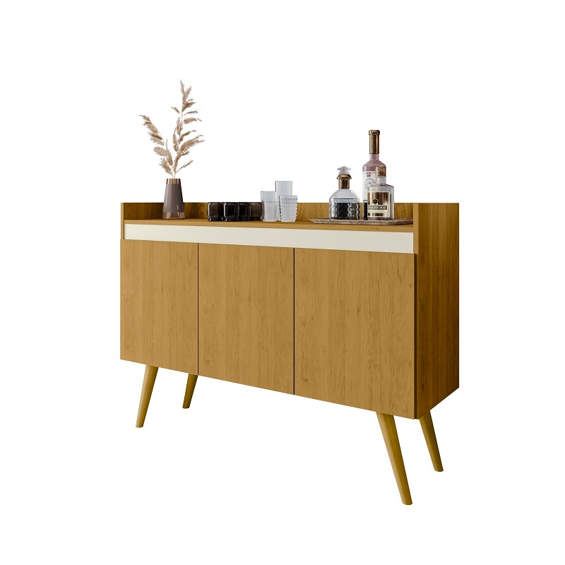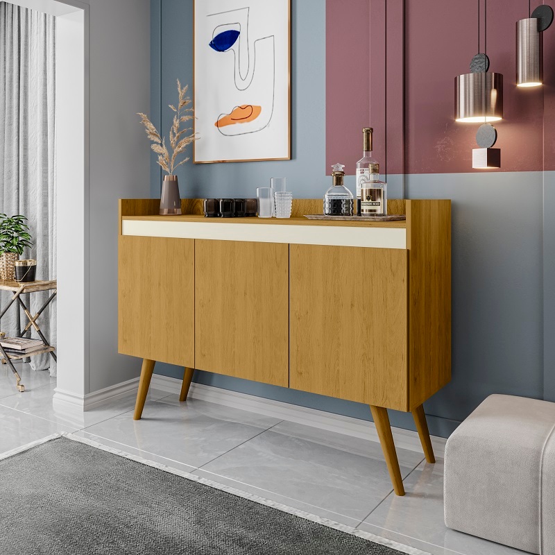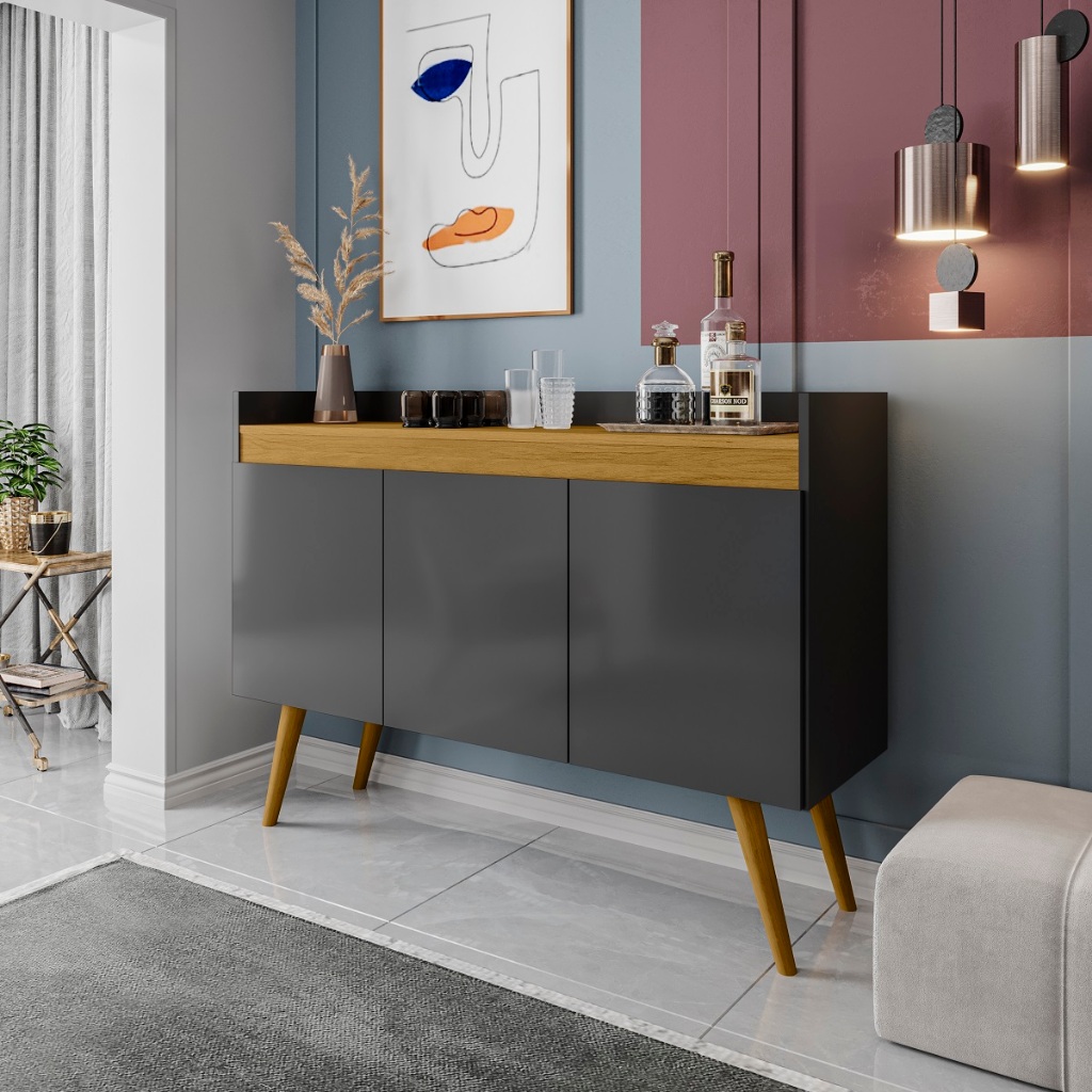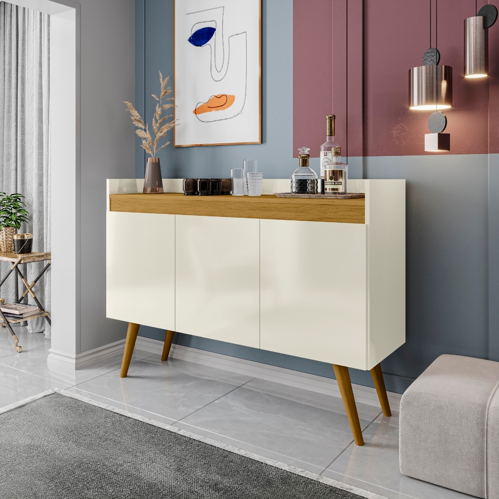 Buffet aparador 3 portas sala cozinha flex 2 cores de acabamento pés de madeiras