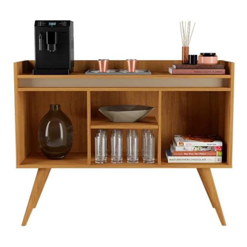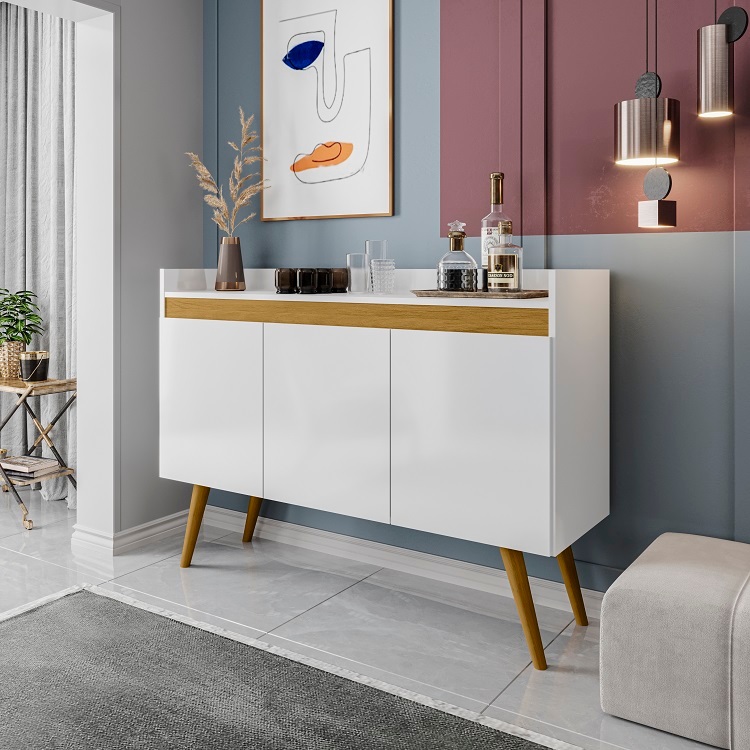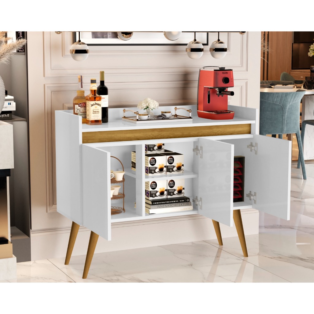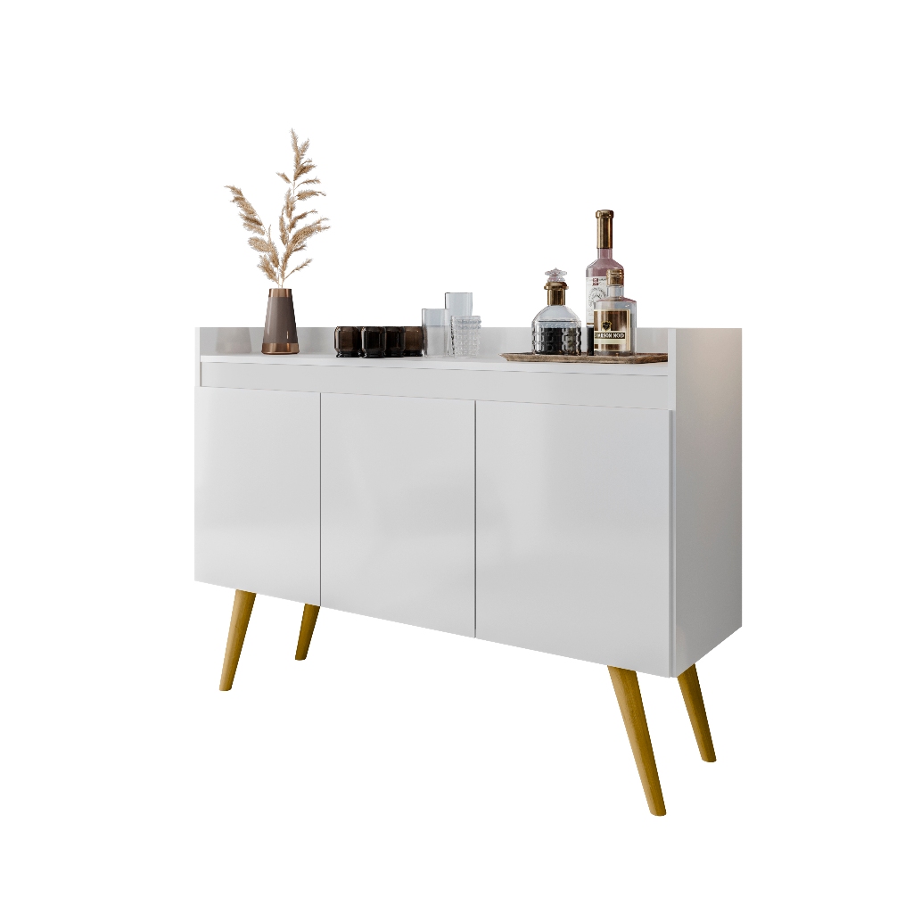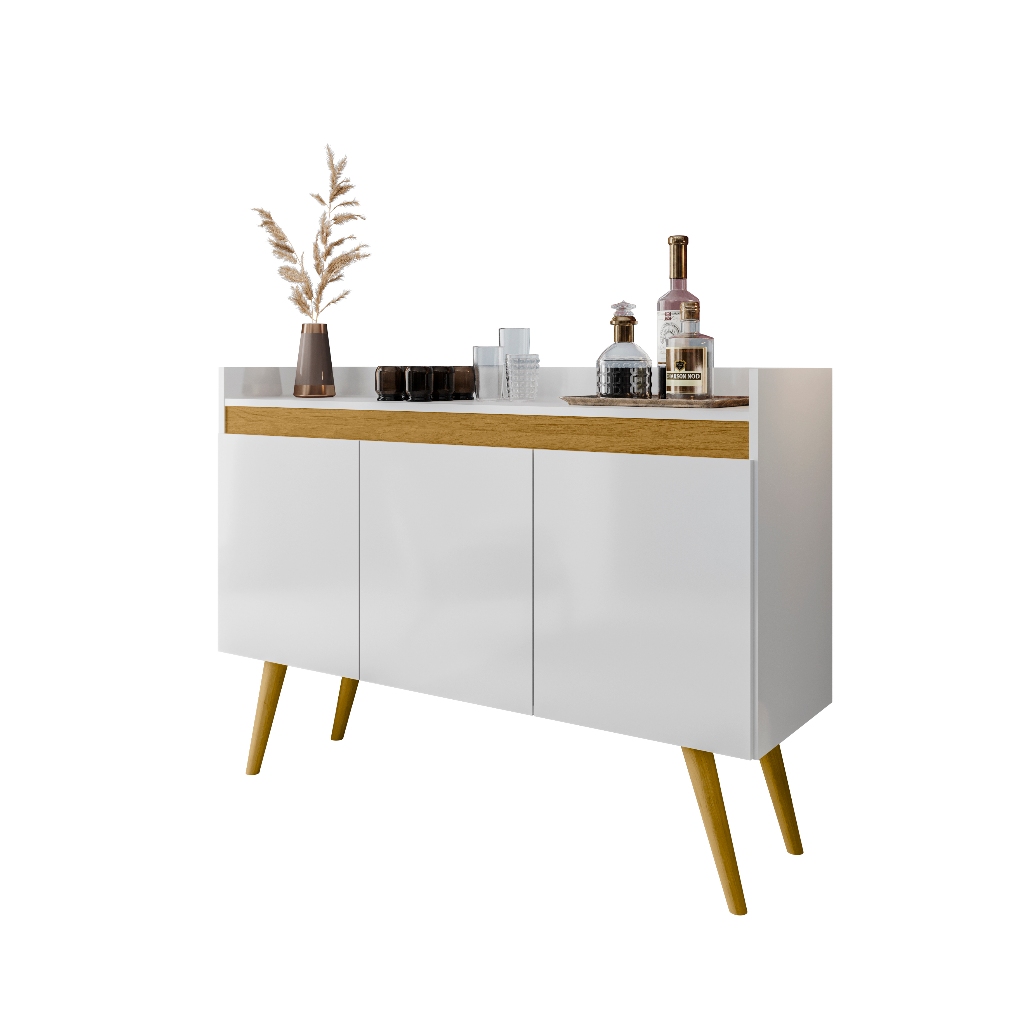 Buffet aparador 3 portas sala cozinha flex 2 cores de acabamento pés de madeiras