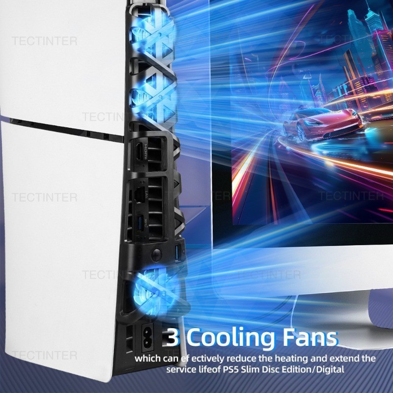 Ventiladores De Resfriamento Para Console PS5 Slim Com Luz LED Azul Doca De Carregamento Rápido Suporte Completo De Vent