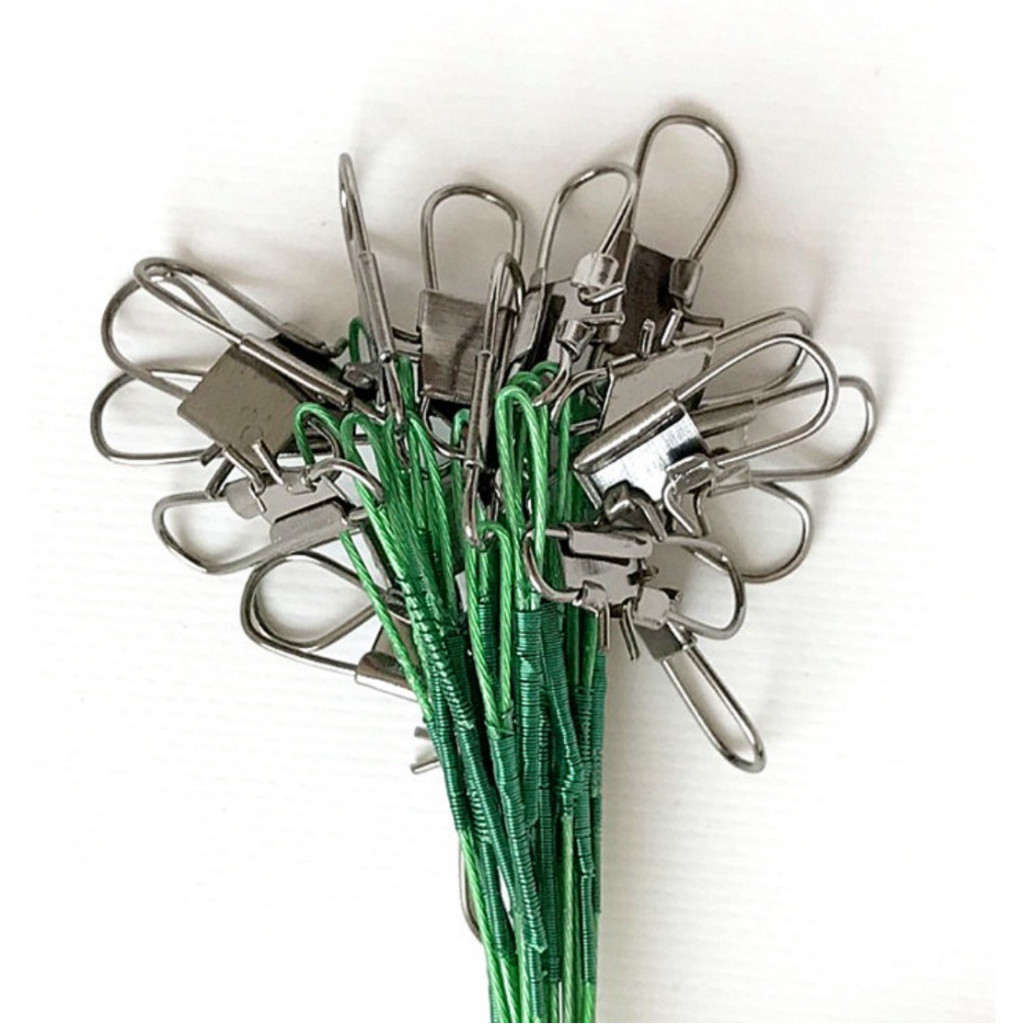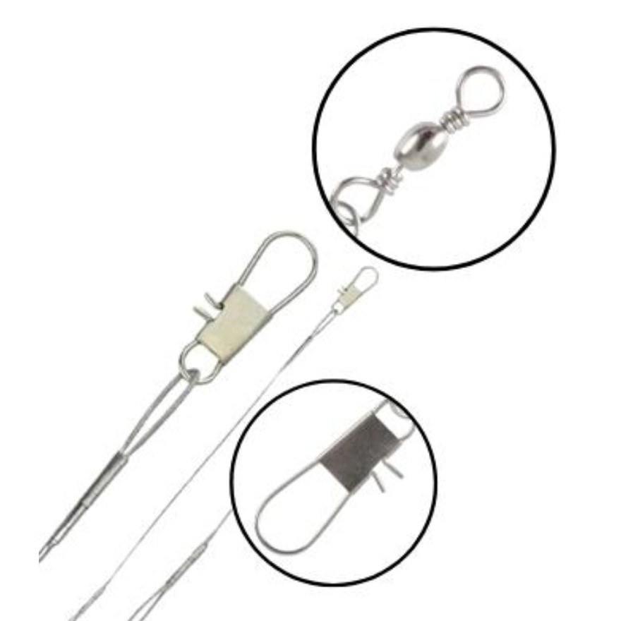 Kit Chicote Castor Cabo de Aço 30cm até 16kg Com Girador e Snap Encastoado Leader Arame de Aço