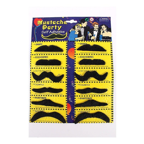 Bigode Falso Adesivo Festa Postiço Cartela 12 Unid