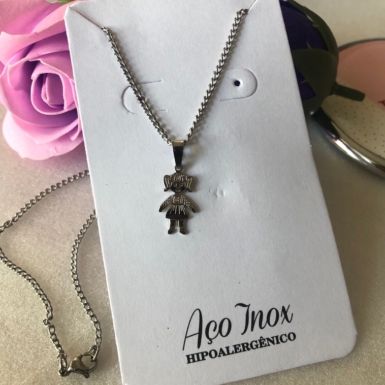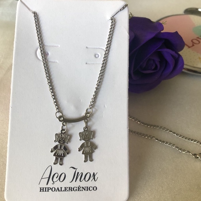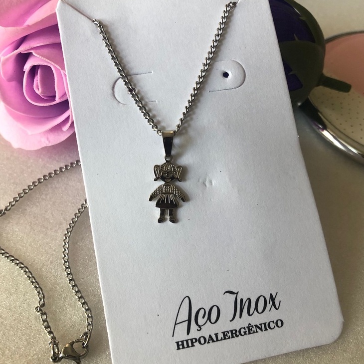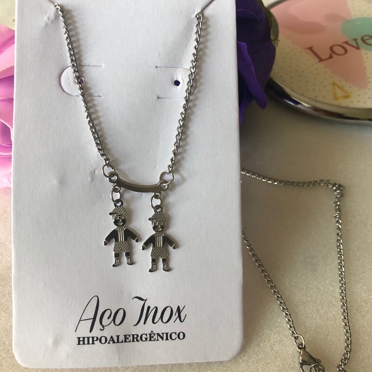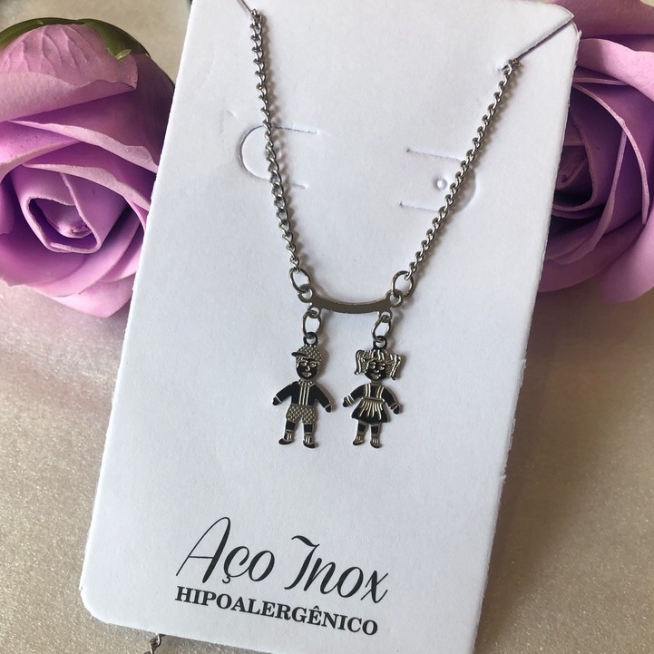 Colar Aço Inoxidável com pingente Menina menino