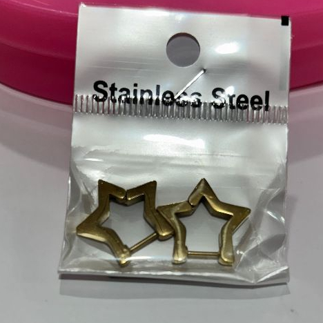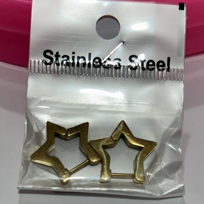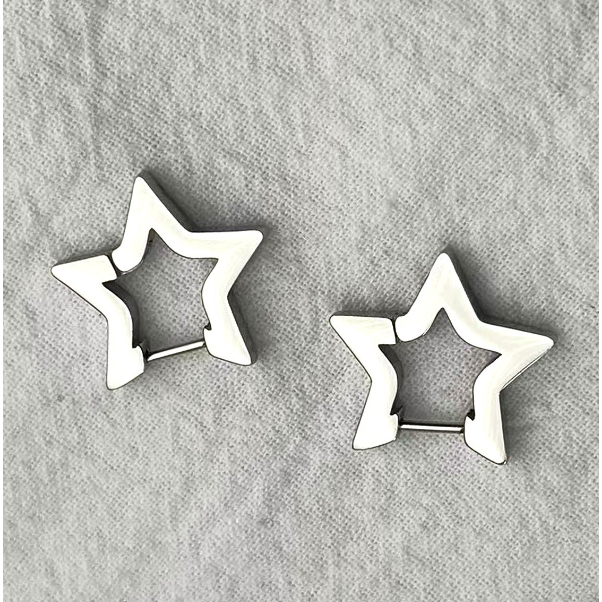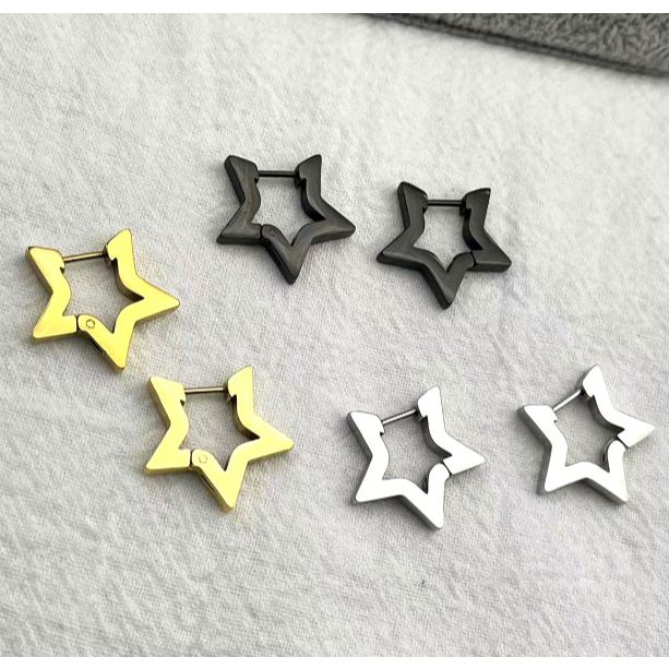 Brinco Estrela Argola Aço Inoxidável Prata Dourado e Preto Unissex