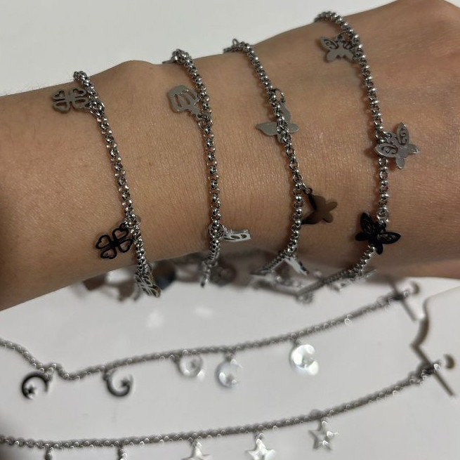 Kit 3/6/9/12 Unidades Pulseira de Aço inoxidável com Pingente