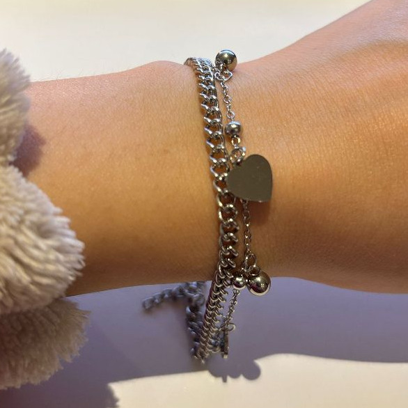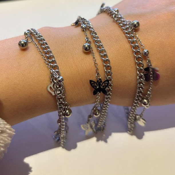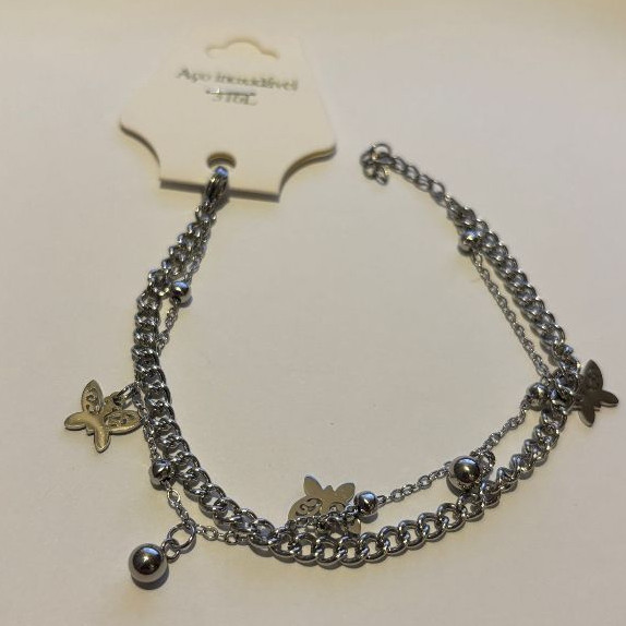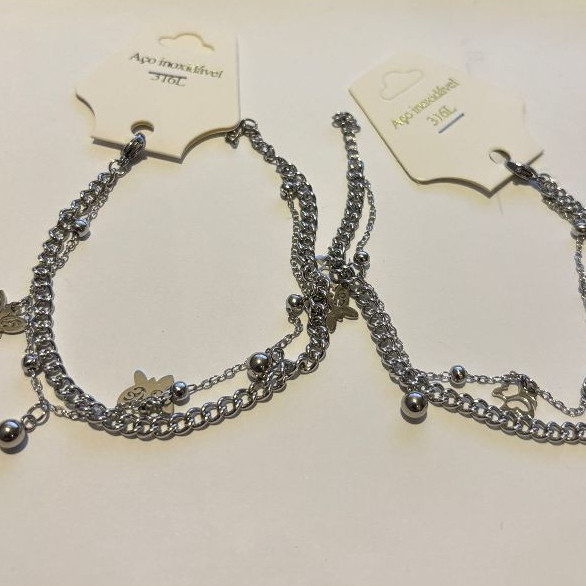 Pulseira Aço Inoxidável Legítima Prateada/Camada Dupla Novo Modelo