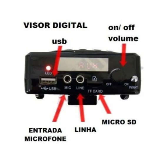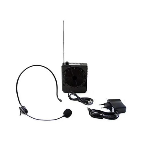 Rádio Megafone Amplificador Voz Multifunções Usb Fm Caixinha Cintura Usb Microfone Professores Palestrantes