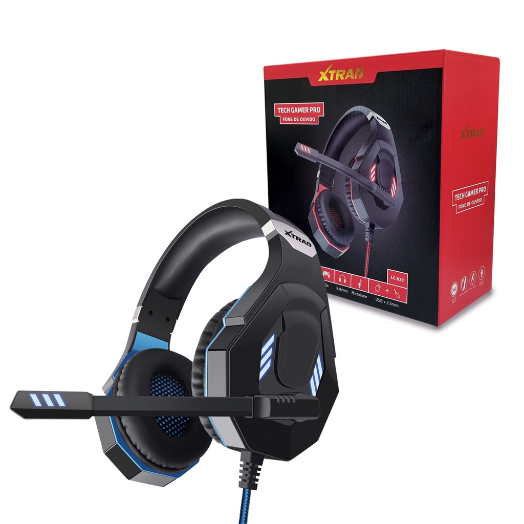 Fone de ouvido gamer com microfone para jogos USB P3 PC luz LED LC-823 marca XTRAD