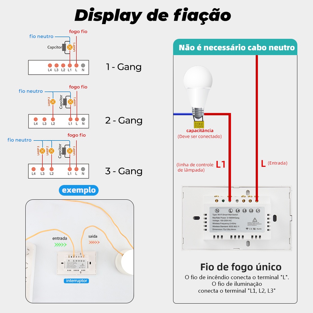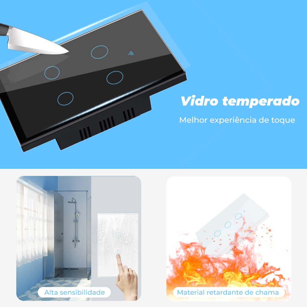 ROVF Interruptor De Parede Com Claro Touch Sem Neutro 1-2-3Gang 110V-220V