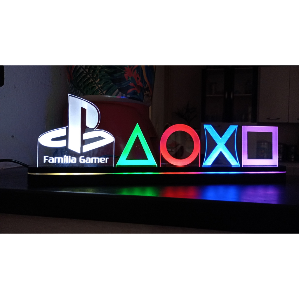 Luminária de Mesa de LED Playstation Símbolos Gamer PS4 PS5