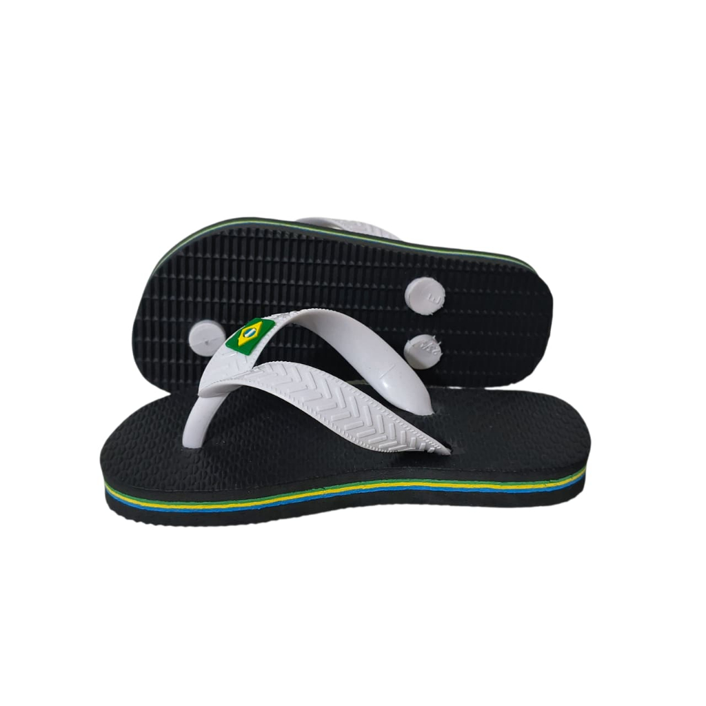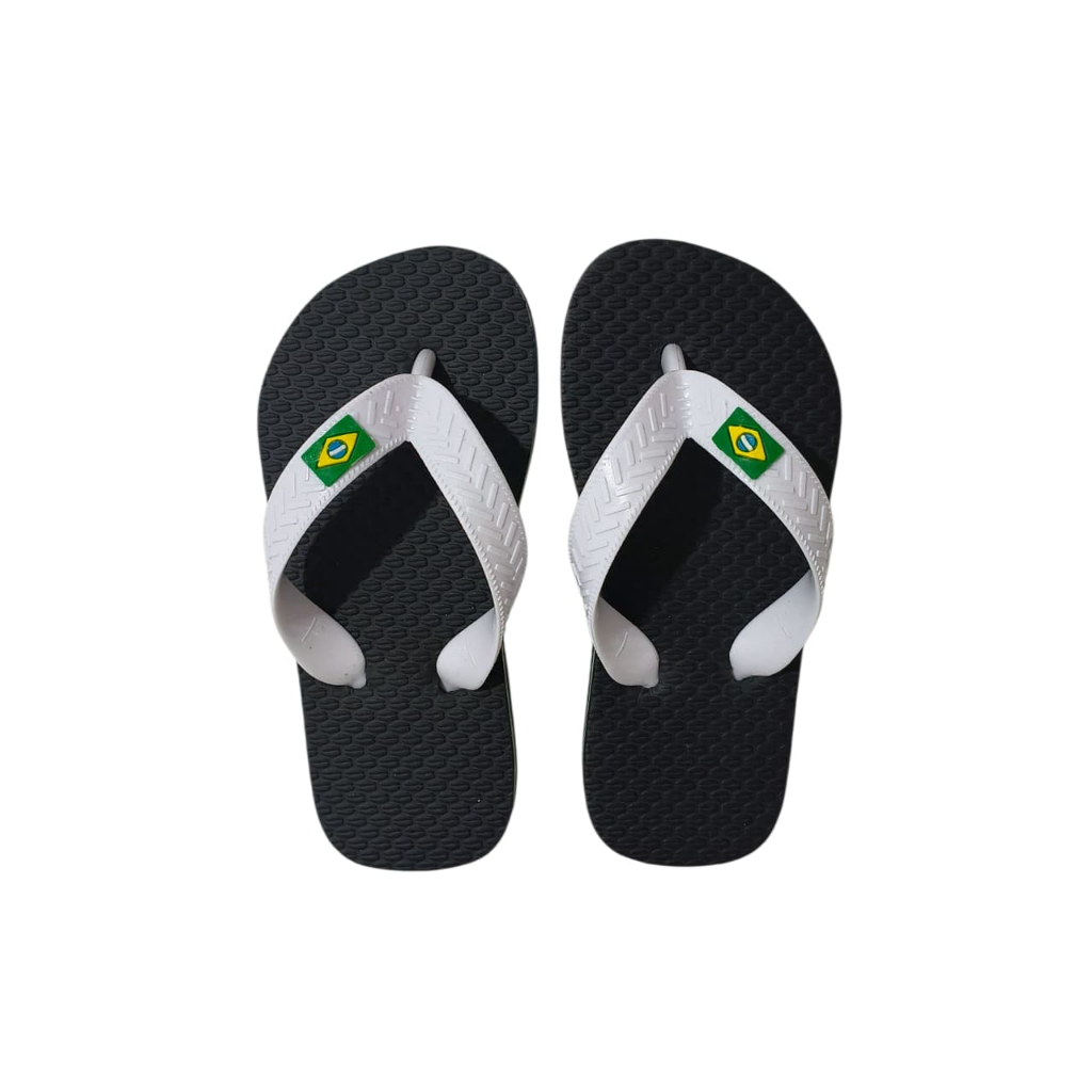 Chinelo Sandália Infantil Menino e Menina Preto Com Tira Branca