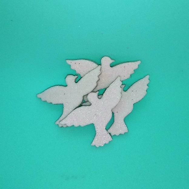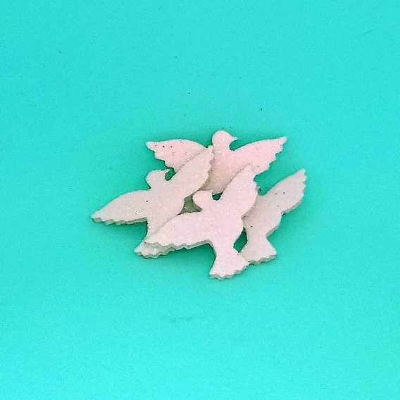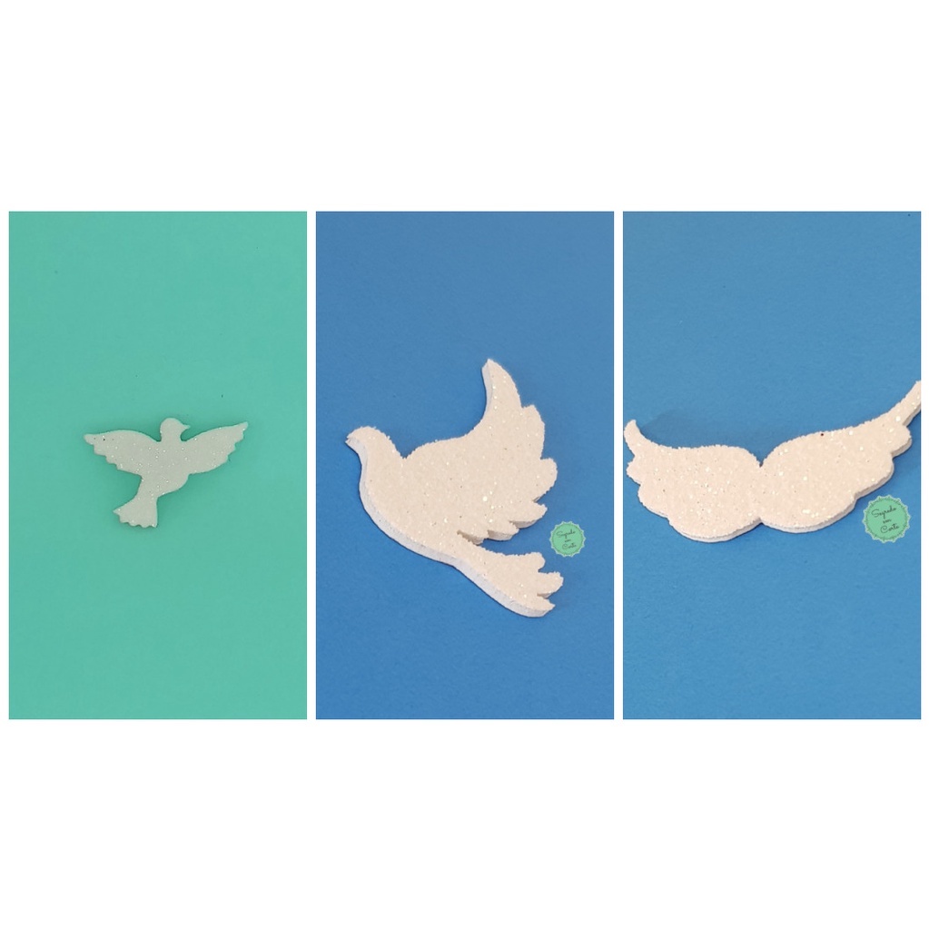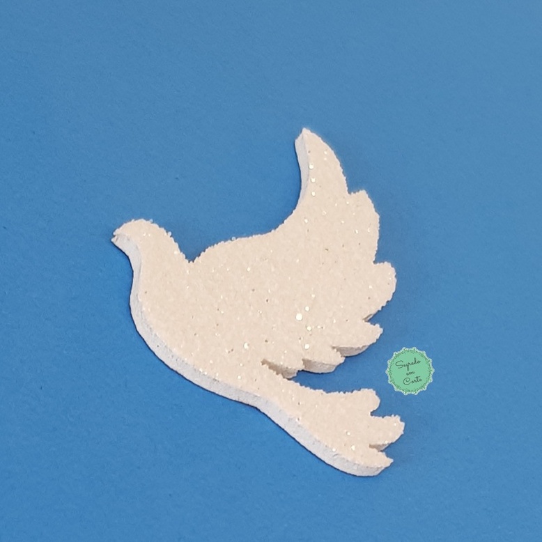 50 Apliques para batizado ((Pombas / pombinhas da paz / asa de anjo) em EVA branco com glitter