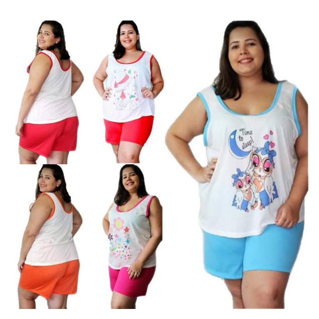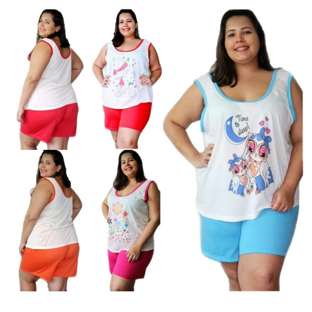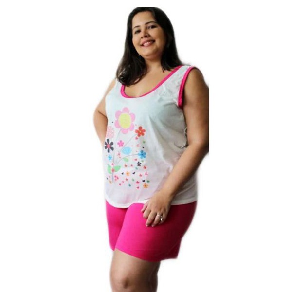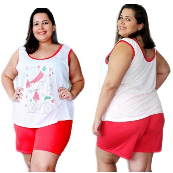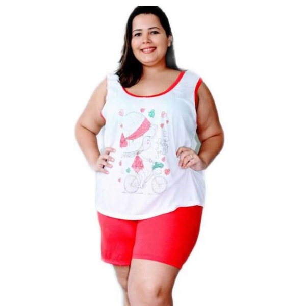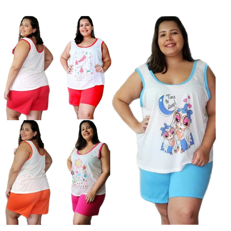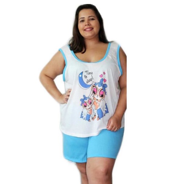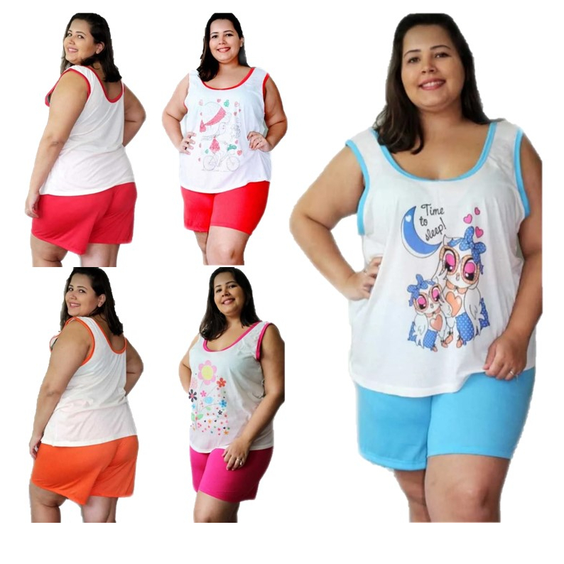 Baby Doll Plus Size Malha G1 G2 e G3,Pijama Verão,Short e Blusa Regata
