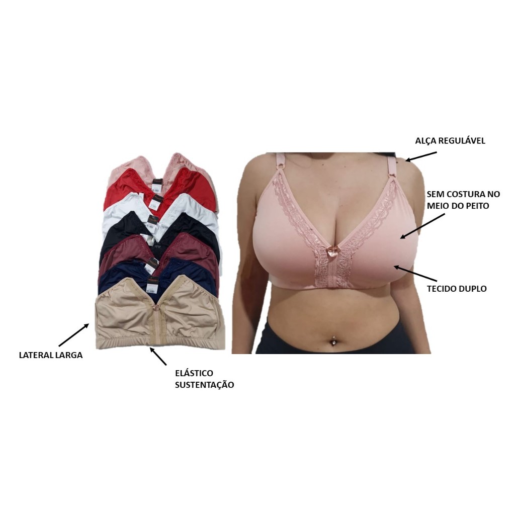 Kit 3 Sutian Tamanho Especial Plus Size Reforçado Sem Bojo Liso Renda 50 52 54 56 Sutiã Sutien Soutian