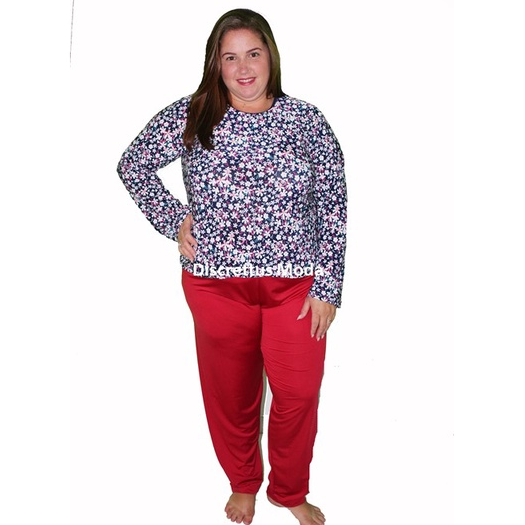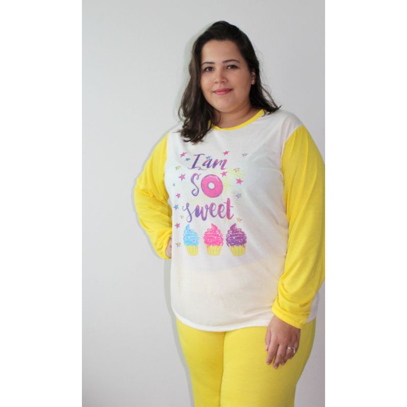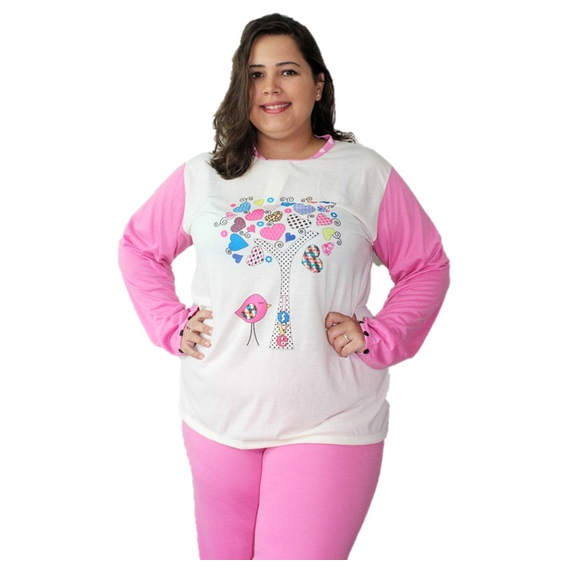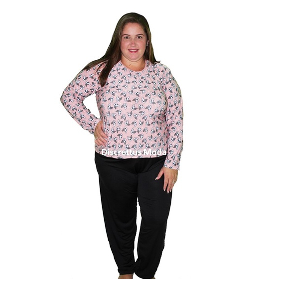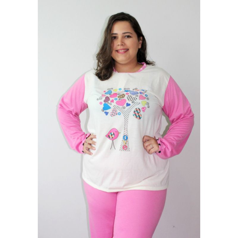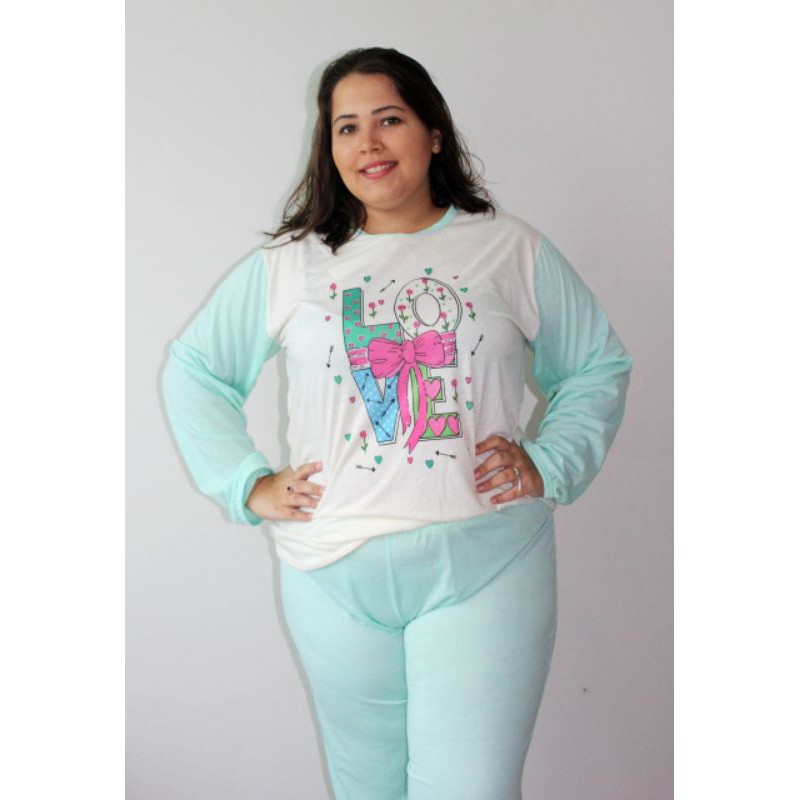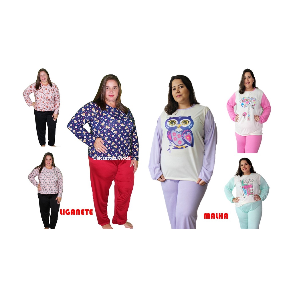 Kit 1 Pijama Conjunto Malha / Liganete Longo Plus Size Frio Inverno Dormir Feminino Mulher G1(50) G2(52) G3(54)