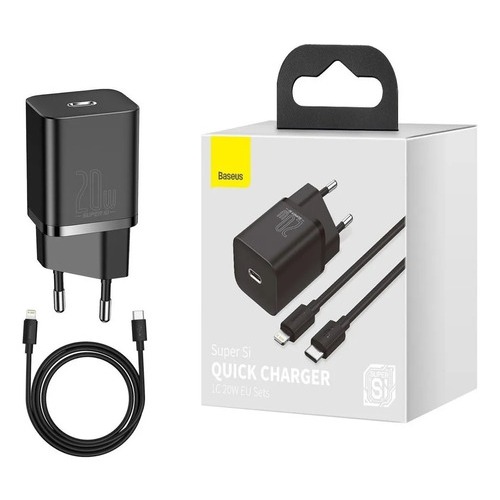 Kit Carregador Baseus Super SI USB-C PD 20 W + Cabo iPhone USB-C Carga Rápida Turbo