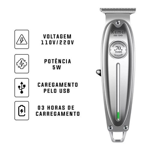 máquina de corte profissional kemei 1949 aparador de pelos 0mm barbeador elétrico com fonte bivolt