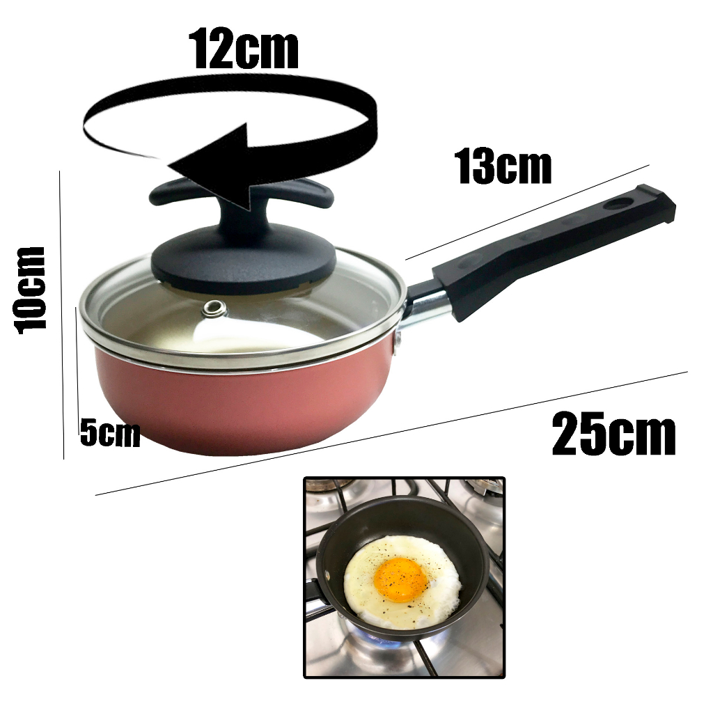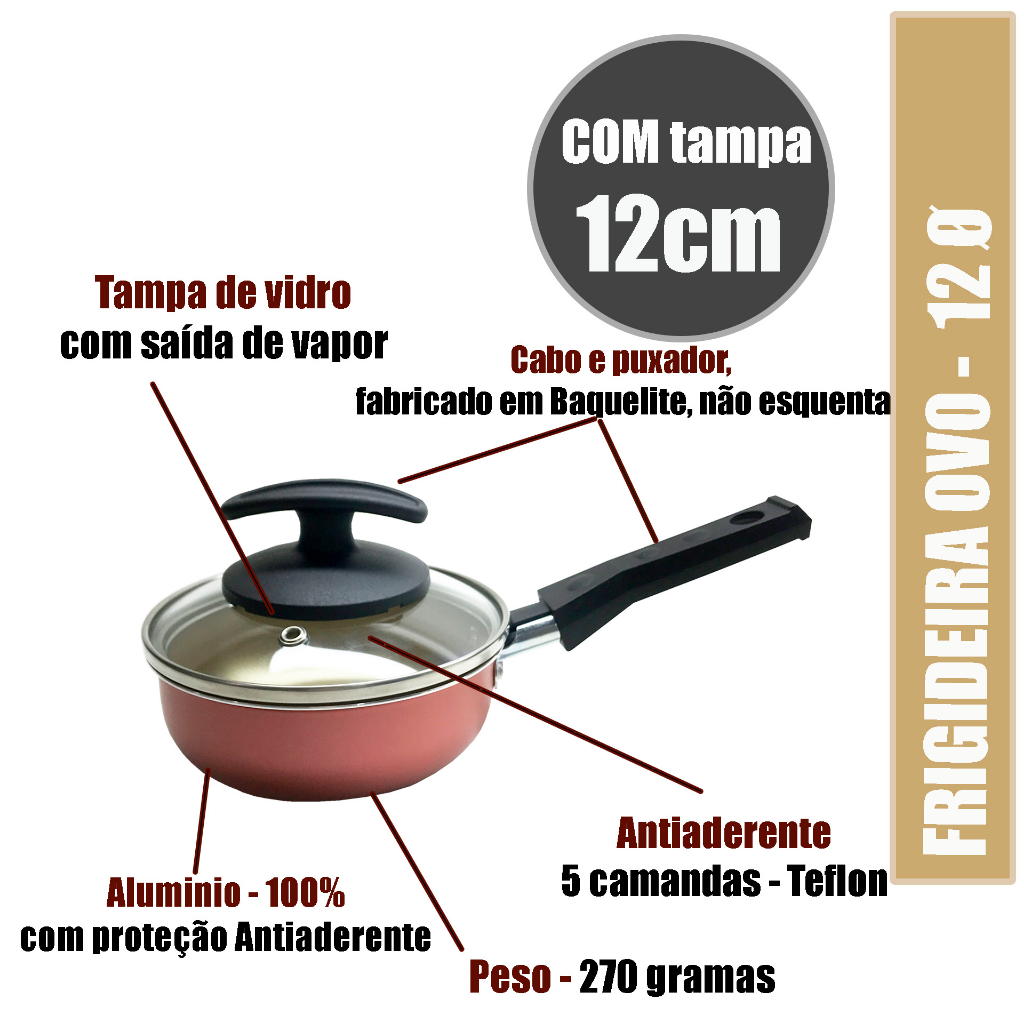 FRIGIDEIRA DE OVO 12CM ANTIADERENTE COM TAMPA DE VIDRO PEQUENA