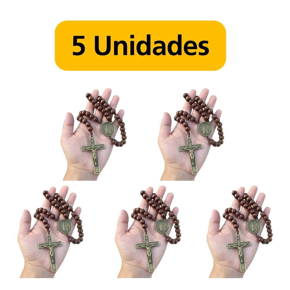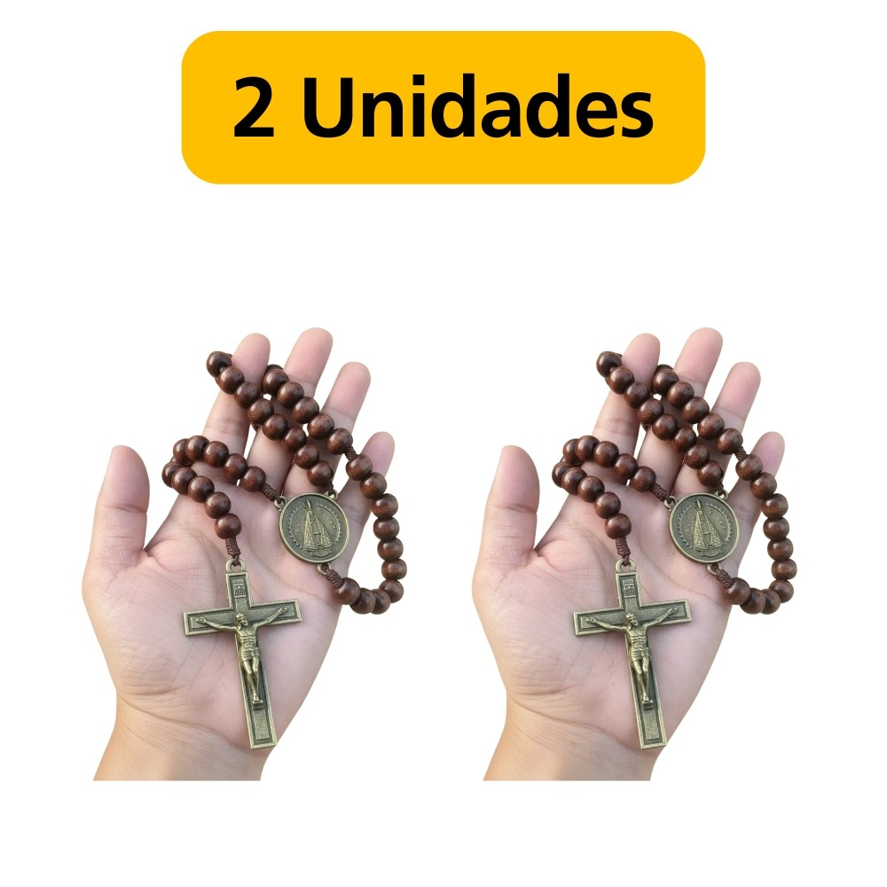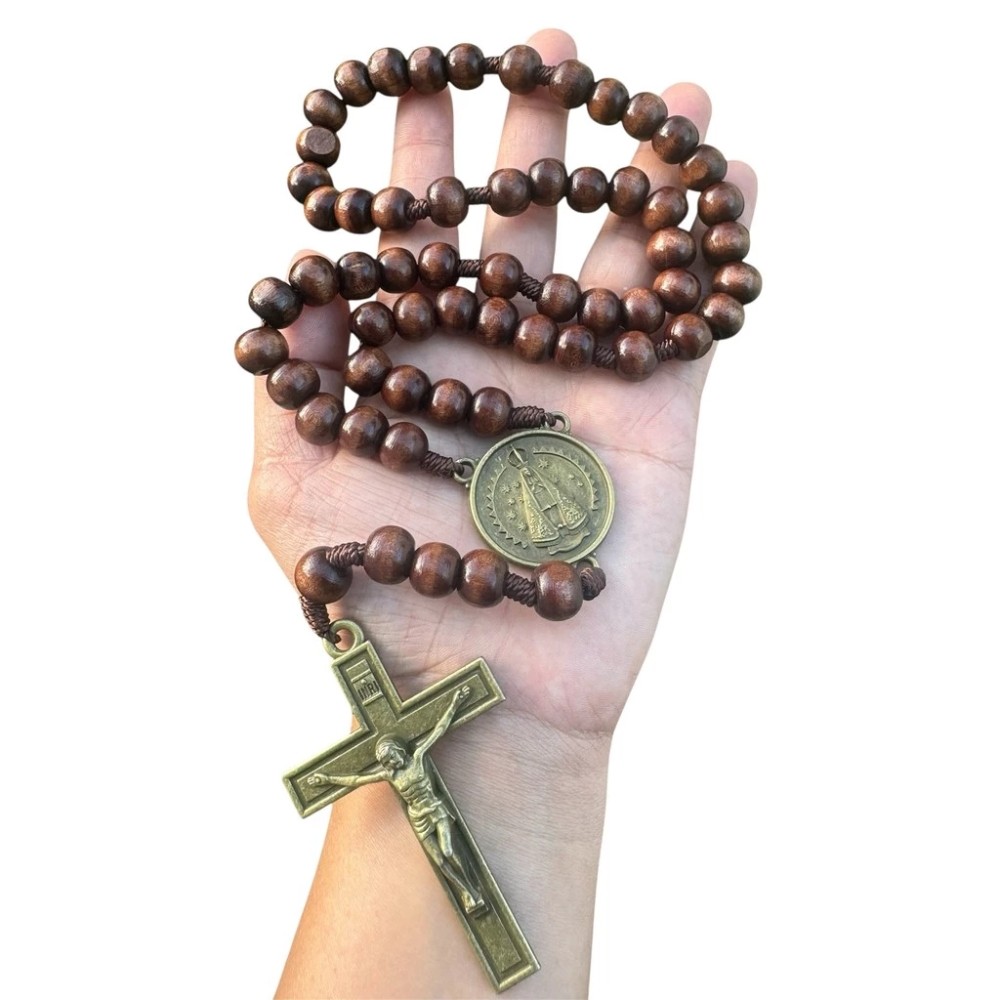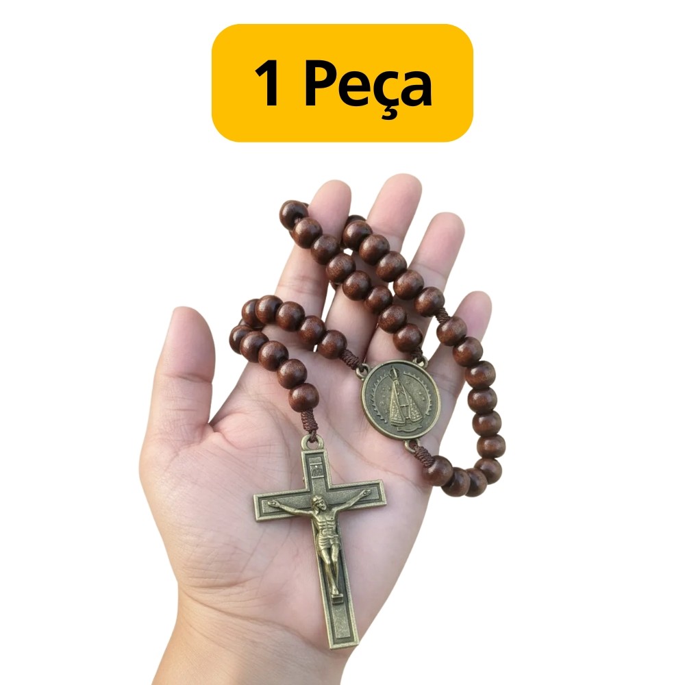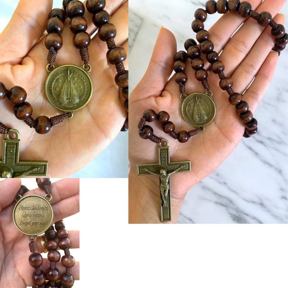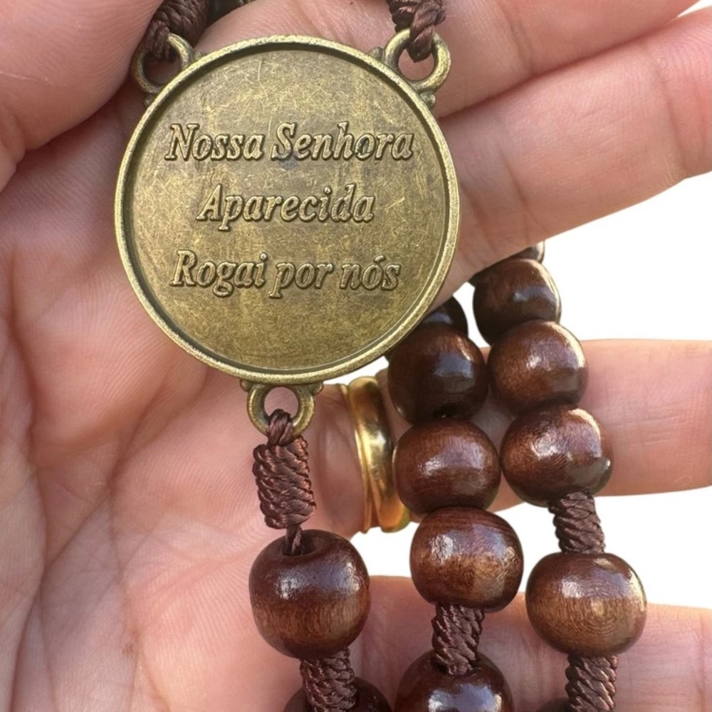 Lindo Terço de Nossa Senhora Aparecida no Cordão e Madeira Metal