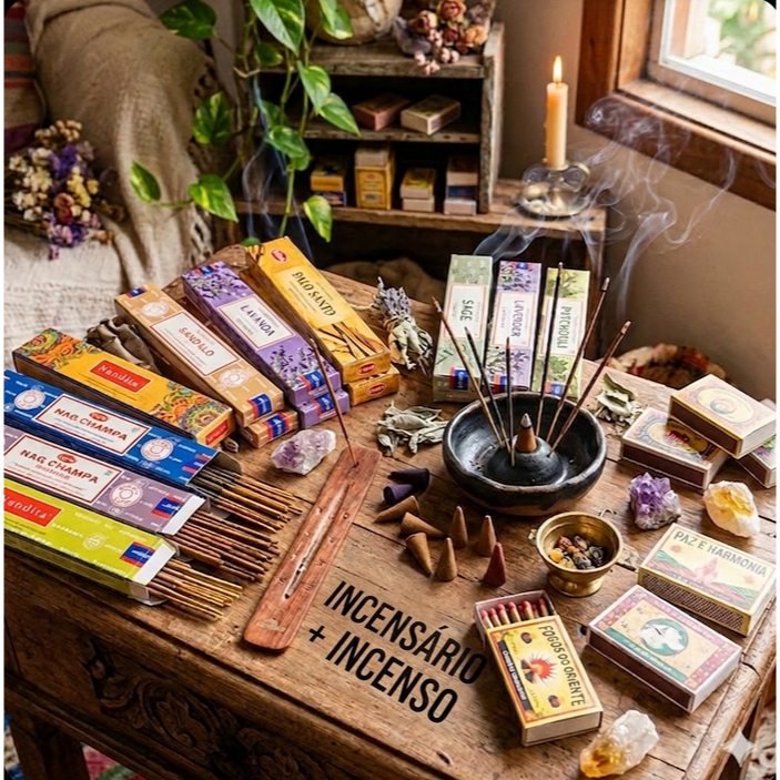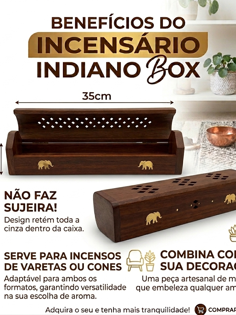 BOX INDIANO MAD RÚSTICA + 1 CAIXA DE INCENSOS 7 VARETAS OU 1 INCENSÁRIO +1 CX INCENSO ALEATORIA