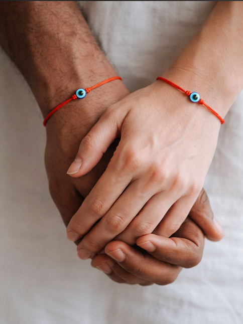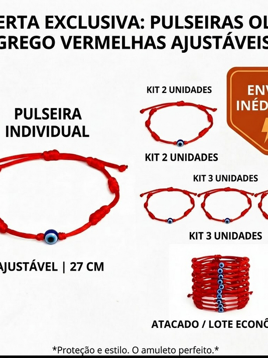 Pulseira com 7 Nós Olho com Grego Cetim Vermelha p/Proteção Namoro/ Noivado/ Casamento AJUSTÁVEL