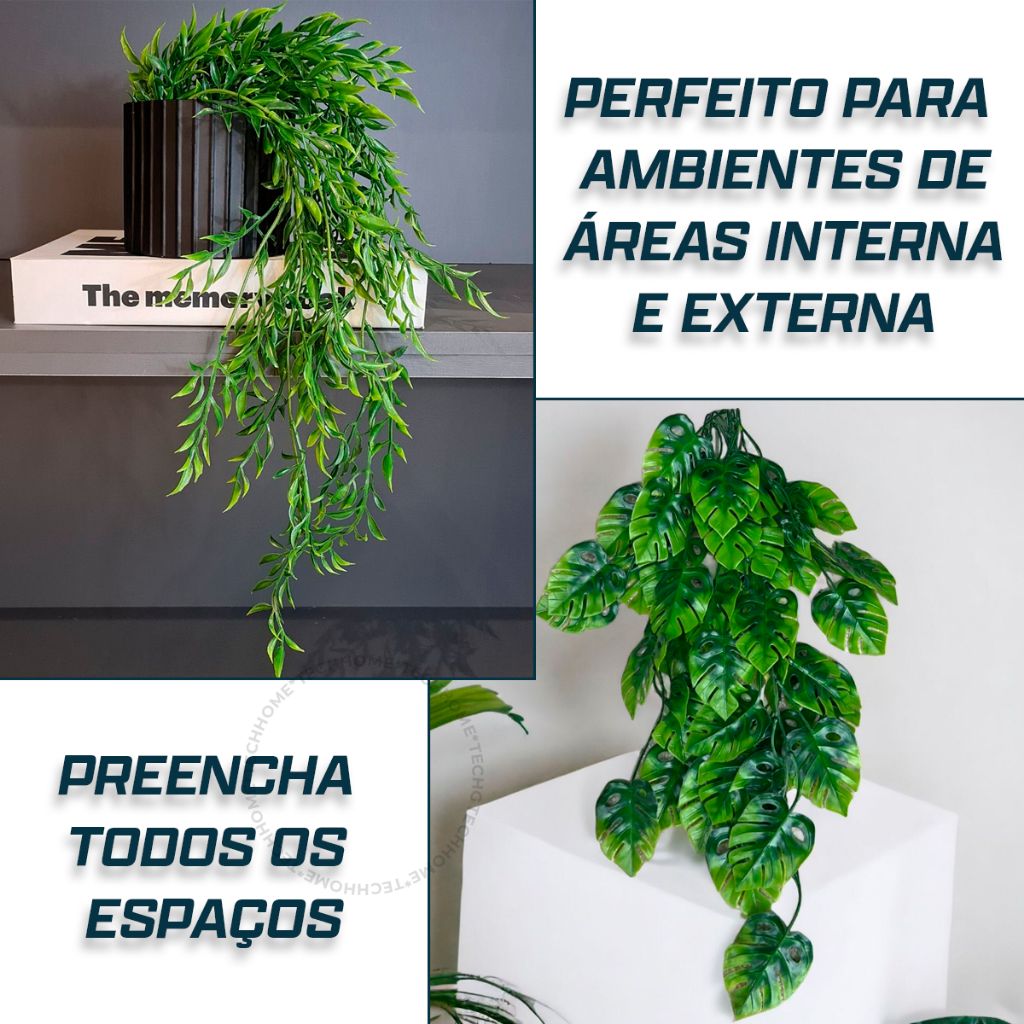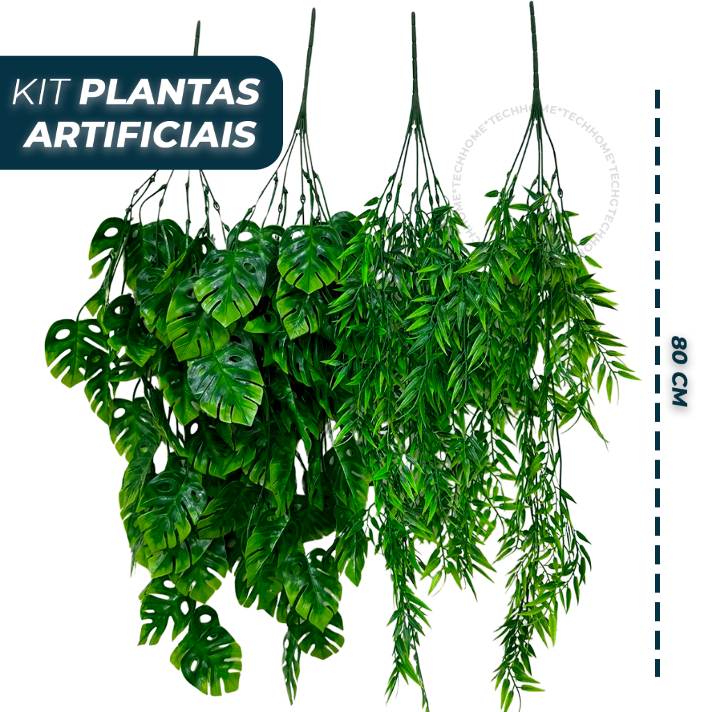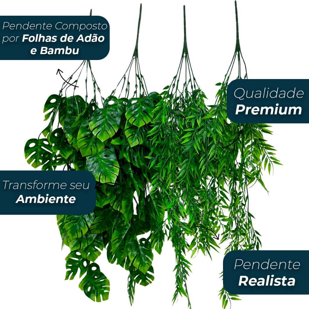 Mix 4 Pendentes de Bambu+4 Pendentes de Adão Artificial 80cm Pendurada Verde Artificial Decoração