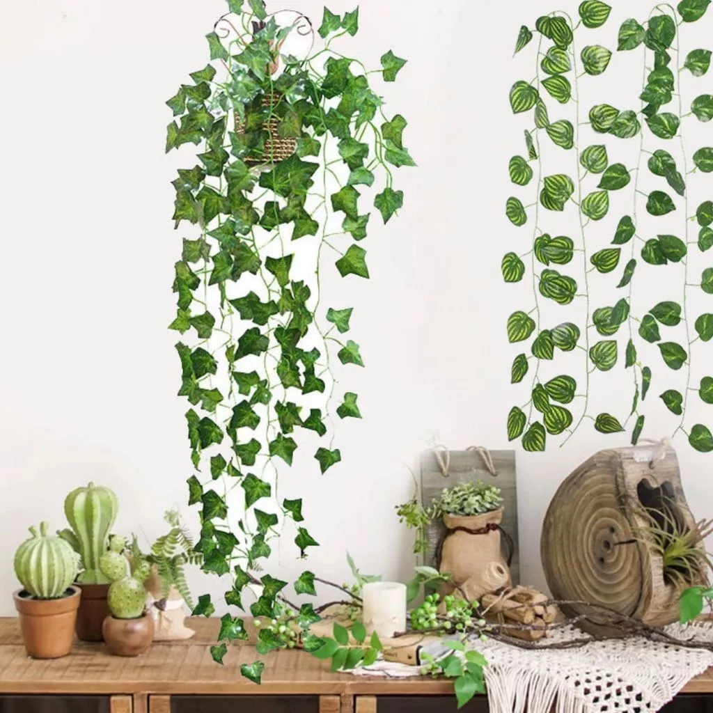 Plantas Decorativa: Vasos Trançado Marrom + Pendentes Artificial Folhas De Hera