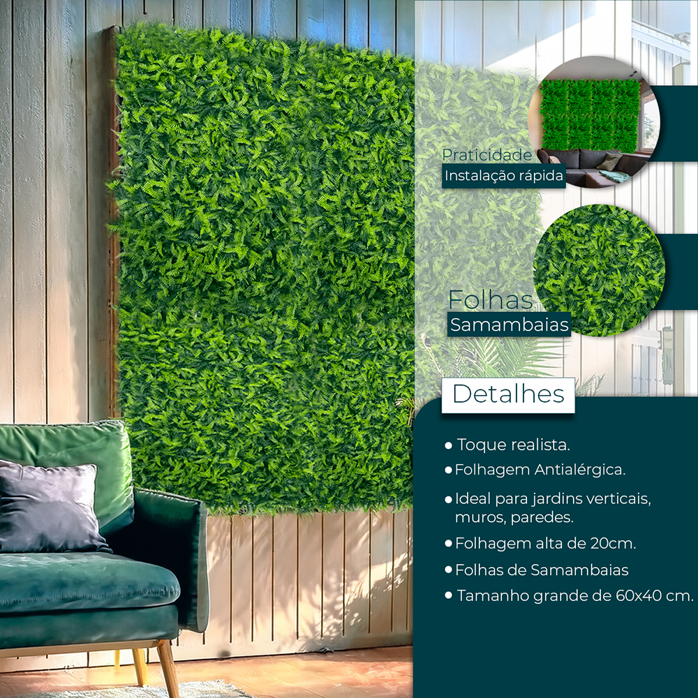 Kit 10 Placas De Grama Samambaia 40x60 Artificial Muro Inglês