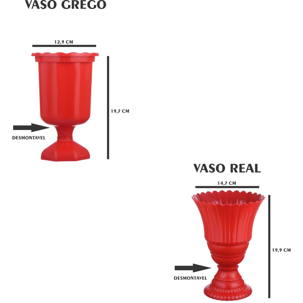 2 Vaso Real - Vaso Decorativo - Luxo - Centro de Mesa - Plástico - Vaso 20 cm